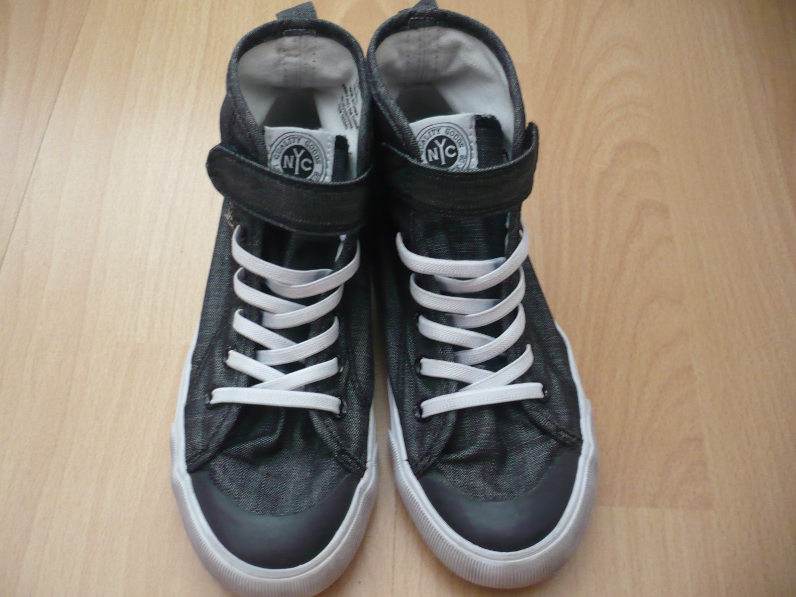V super stave, nosené len v telocvični, zapínanie na suchý zips, šnúrky sú v podstate guma, teda sa natiahnu. Veľkosť sedí