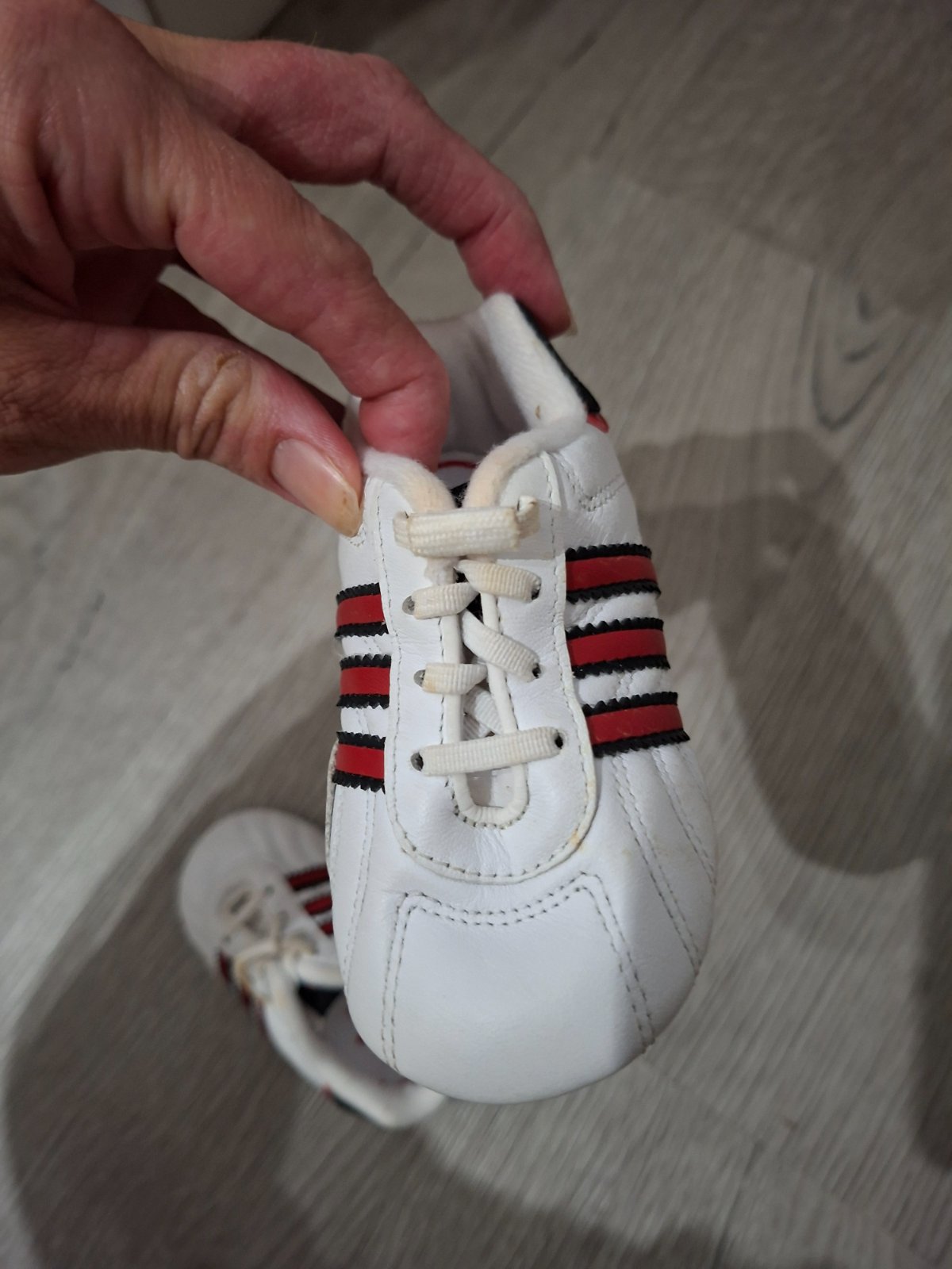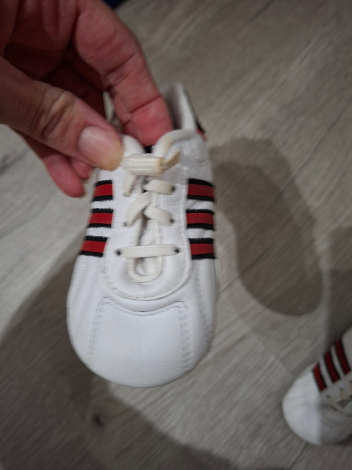 Vo funkčnom stave. Sú zajdene šnúrky a kraj ako sa obáva vid foto. Je to gumičkové. Neskúšala som prať preto predávam ako dobrý stav. Veľkosť je označená us 3K, Fr c 19.