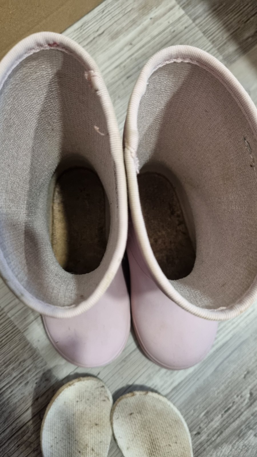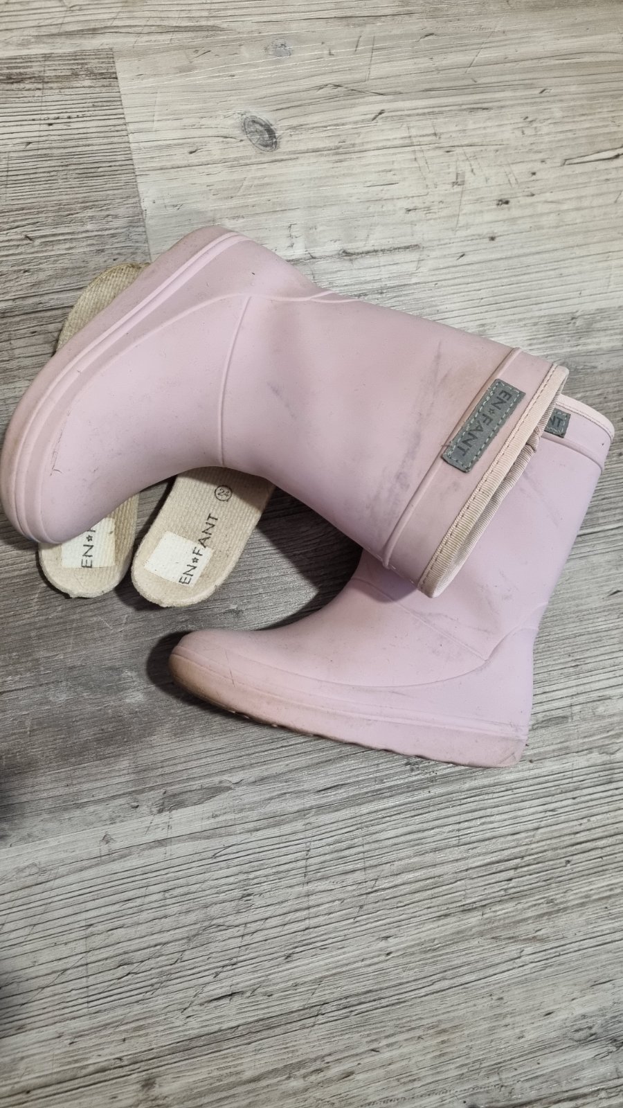 Nosené hodne, často, nie sú deravé, sú plne funkčné, po očistení si myslím super. Problém je, že sa ich bojím dať do práčky, pretože ich jednak nemám kde sušiť a druhak sa zle sušia. My sme ich nosili v pohode aj do škôlky. Nosenie ale vidno, treba poriadne pozrieť foto! Len som ich otrela vlhkou handrou. VD 15. 5 cm