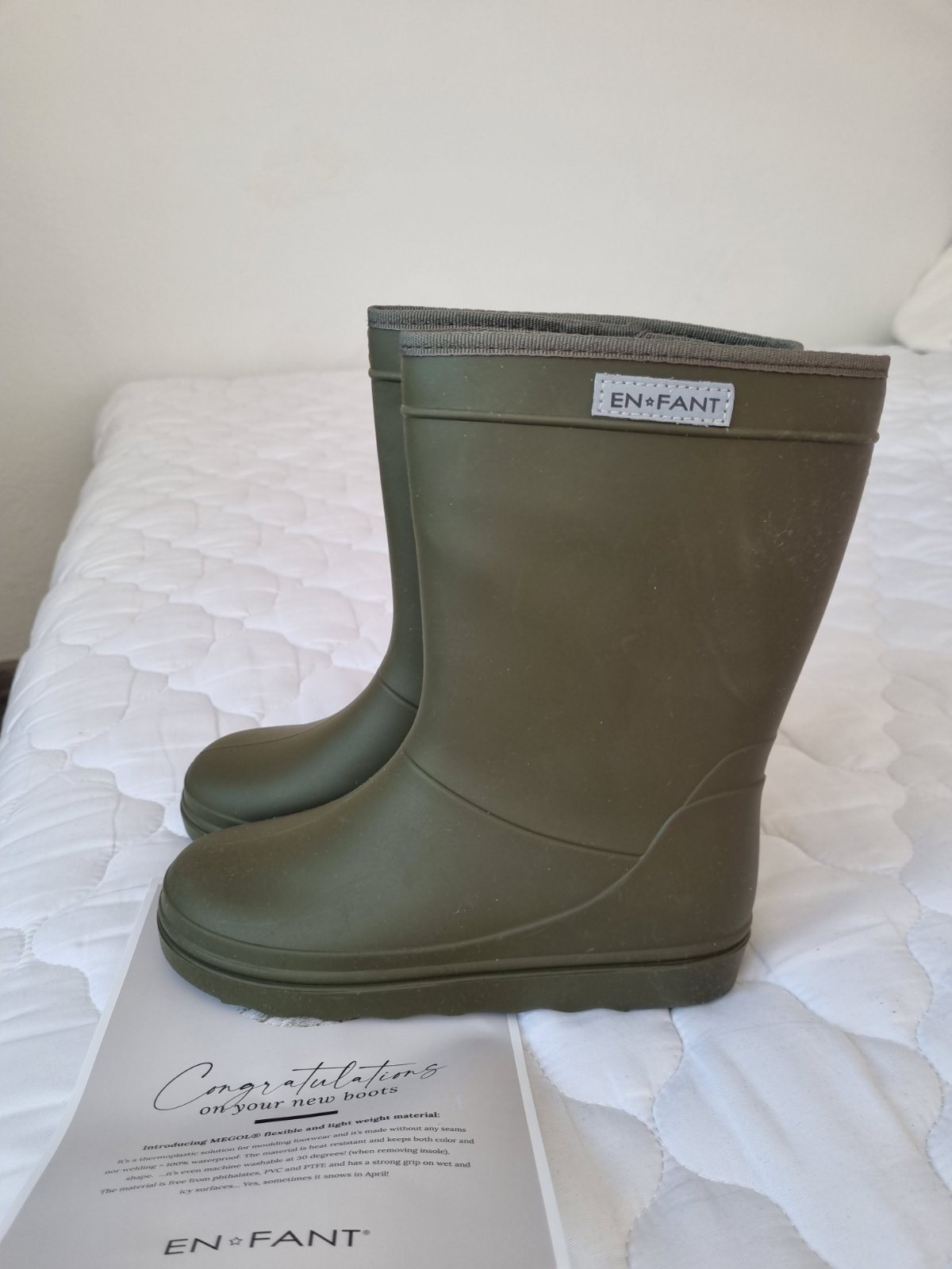 Na predaj nové gumáky do dažďa značky EN FANT. Sú vyrobené z prírodného kaučuku, čo nie je plast. Vďaka tomu sú mäkké, ohybné, dobre sedia na nožičke.