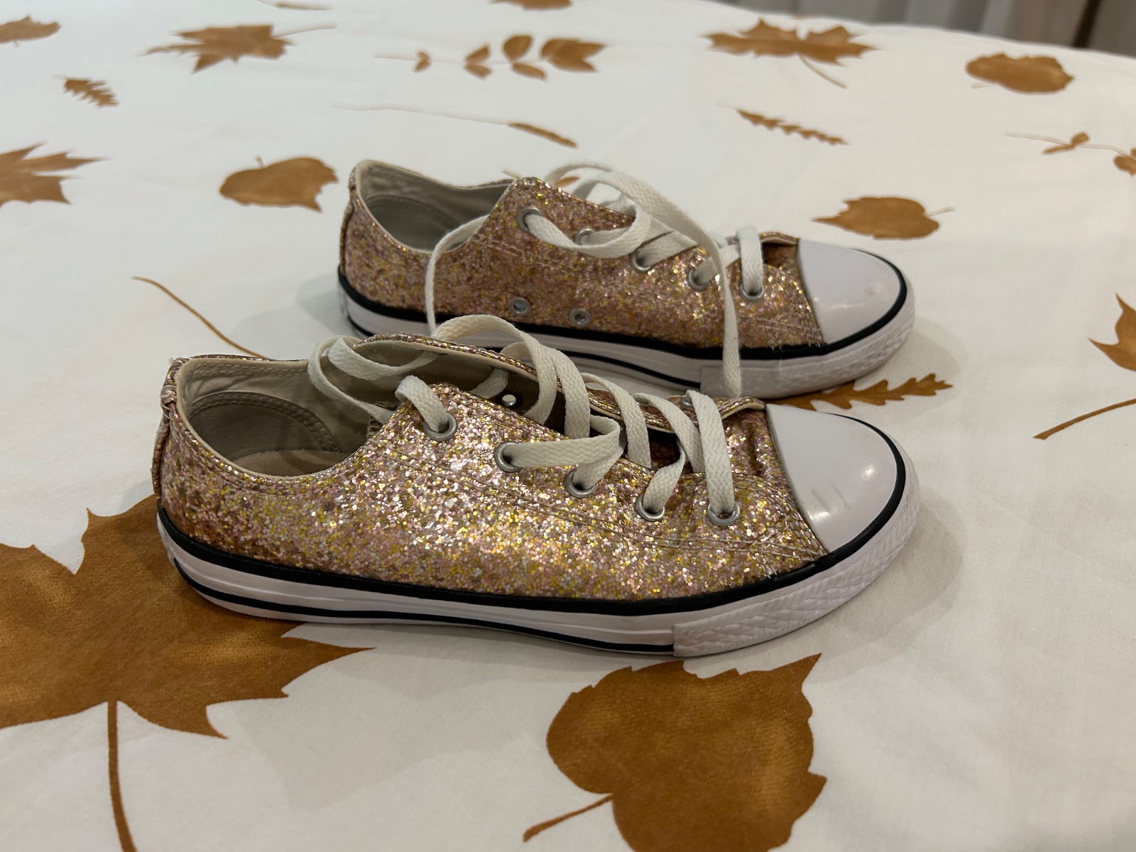 Krasne kožené Converse tenisky, malo nosene, len dcérka šuchla špičku tu gumu aj päti zošuchane…viď.foto. Vložka sa nedá vybrať, tak som merala takto ….vid.foto. Parádu ešte urobia určite. Za symb...