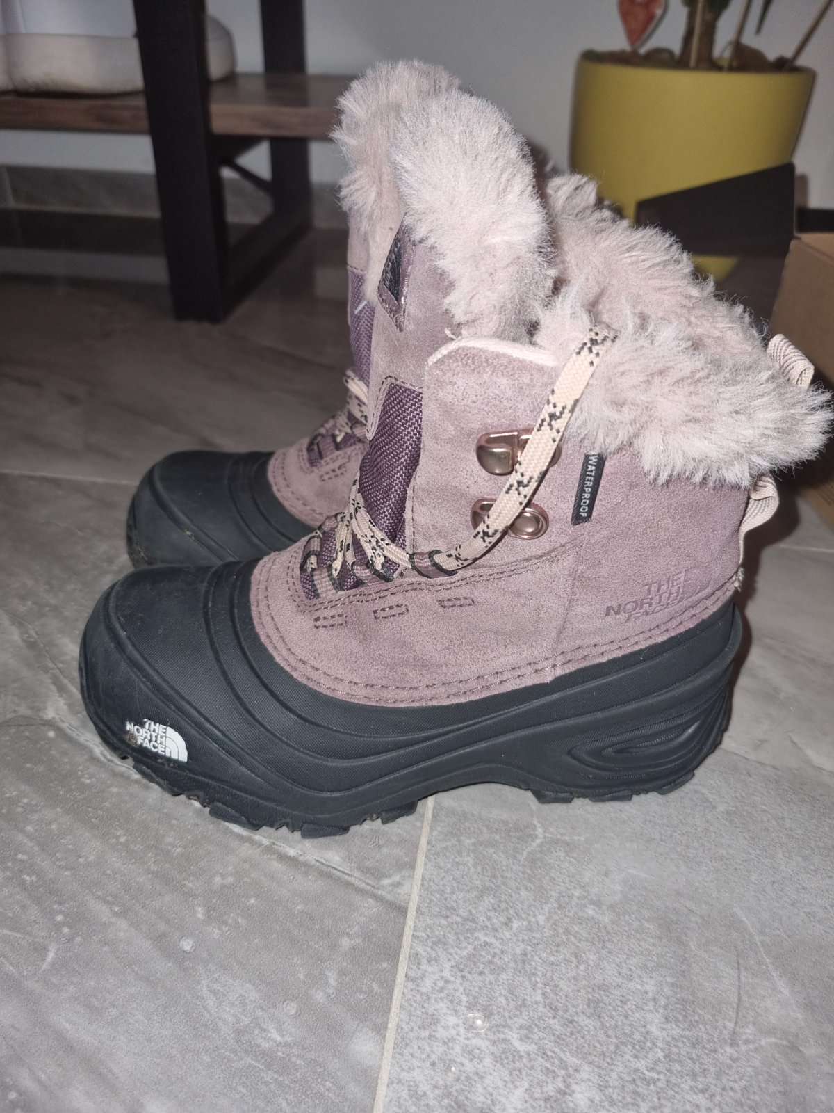 Skvelé zimné topánky od značky The North Face. Veľmi teplé, nepremokavé (spodná časť topánky je celá pogumovaná). Vhodné do dažďa, snehu, blata-dobre sa to čistí). Maximálna spokojnosť s nimi. Sú v TOP stave, nosené jednu zimu na striedacku s inými. Veľkosť je písana 33,5 no sú menšie ako bežná 33 (predajcovia odporúčajú aspoň o číslo väčšie ako zvyčajne nosia deti)- ja som namerala vnútornú dĺžku 20cm. Pôvodná cena 68€. Topánky sú ešte rok v záruke.
