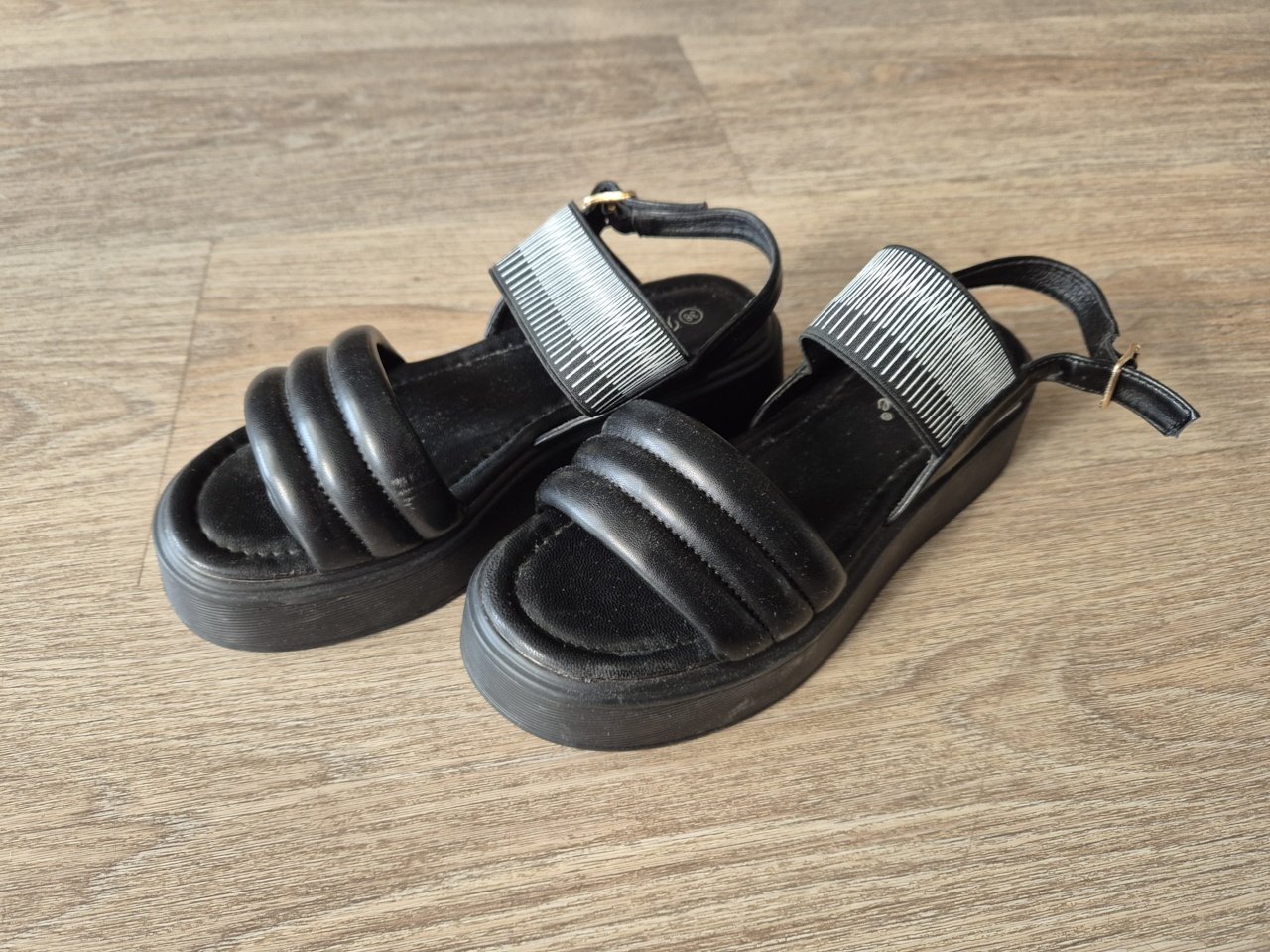 Predám dámske sandálky čierno-zlatej farby, veľkosť 38, raz obuté.