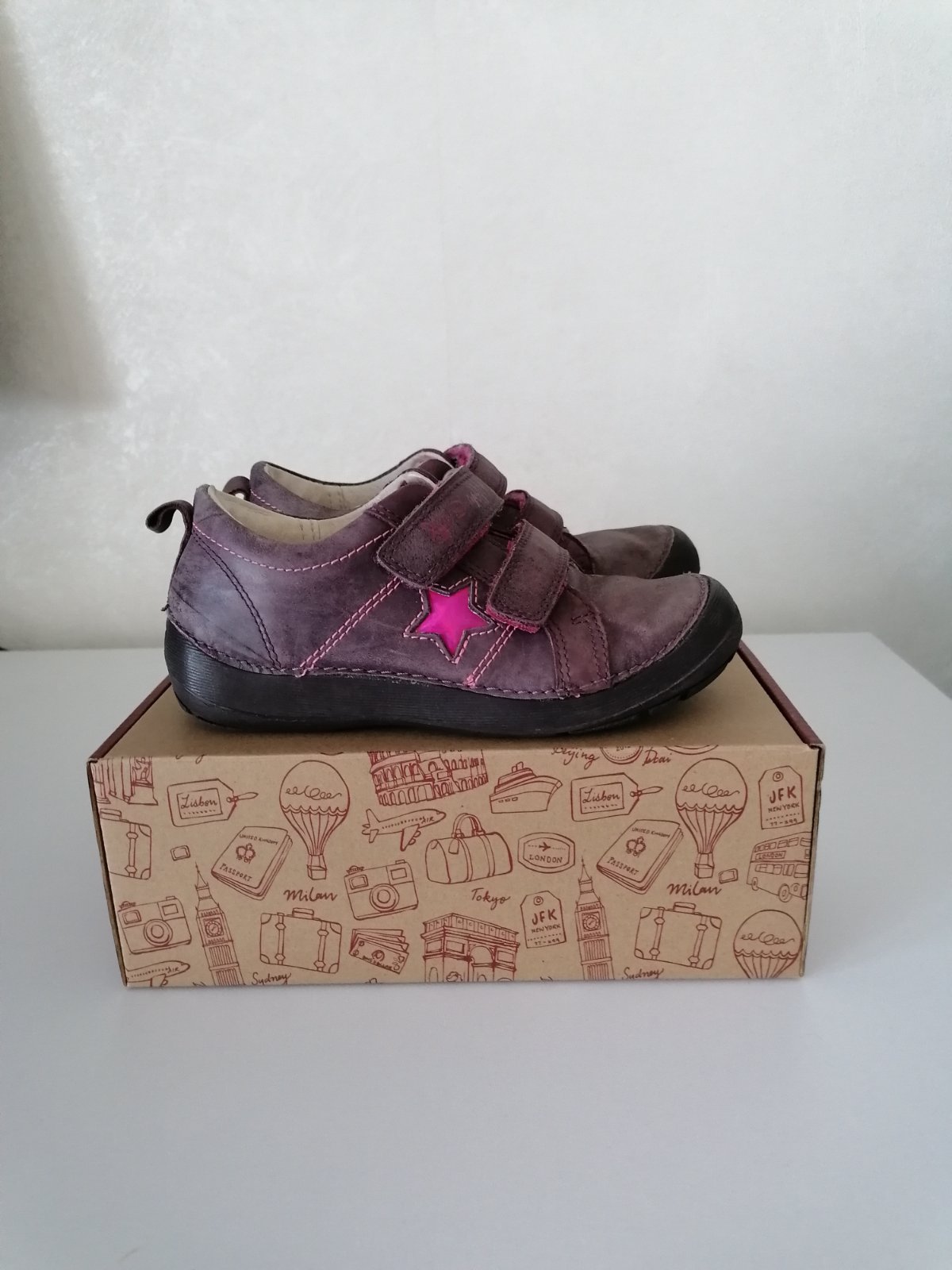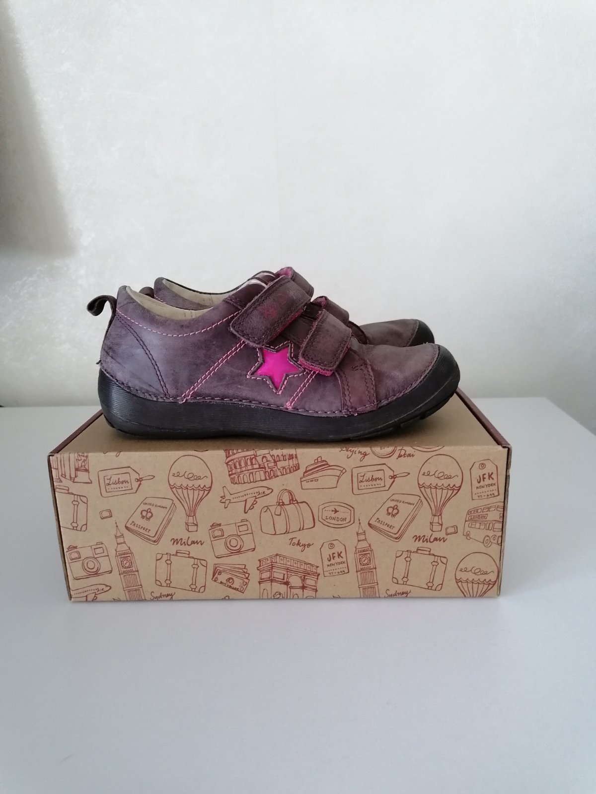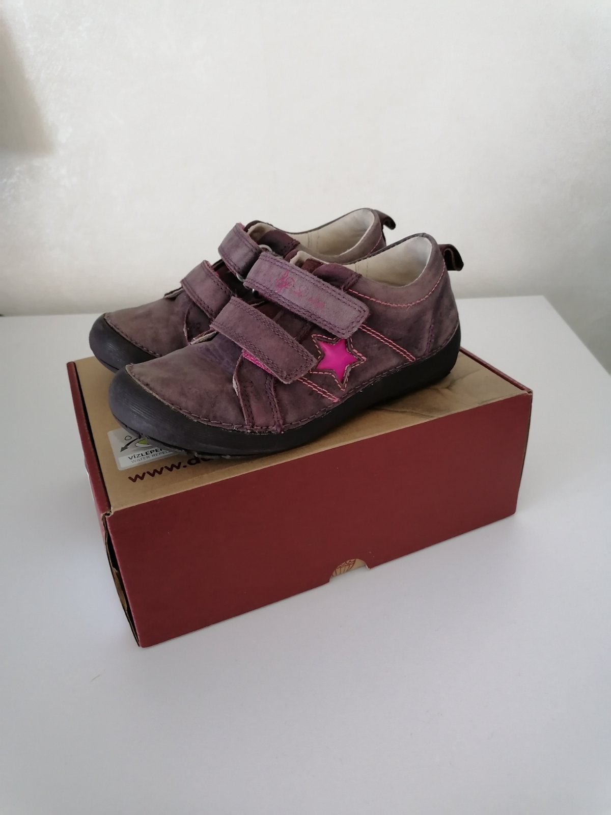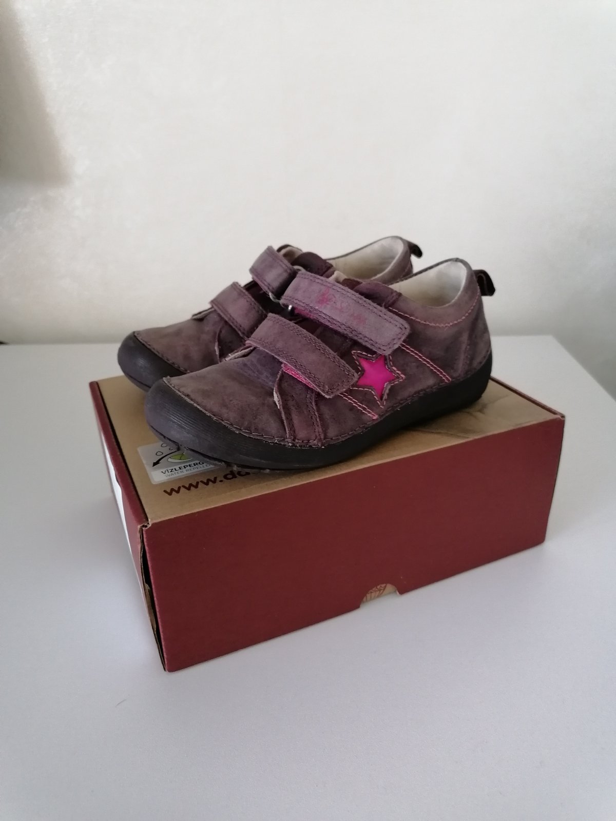 Kožene topanocky znamej znacky DD Step, vhodne na prechodne (jar/jesen) obdobie. Topanky su ohybne, maju dobry tvar špičky, a zaroven je topanka vzadu za pätou spevnena. Podražka je protišmykova z kvalitnej prirodnej gumy, plus zdvihnuta proti okopu. Vnutorna dlzka cca 18,5 cm - kuk foto.