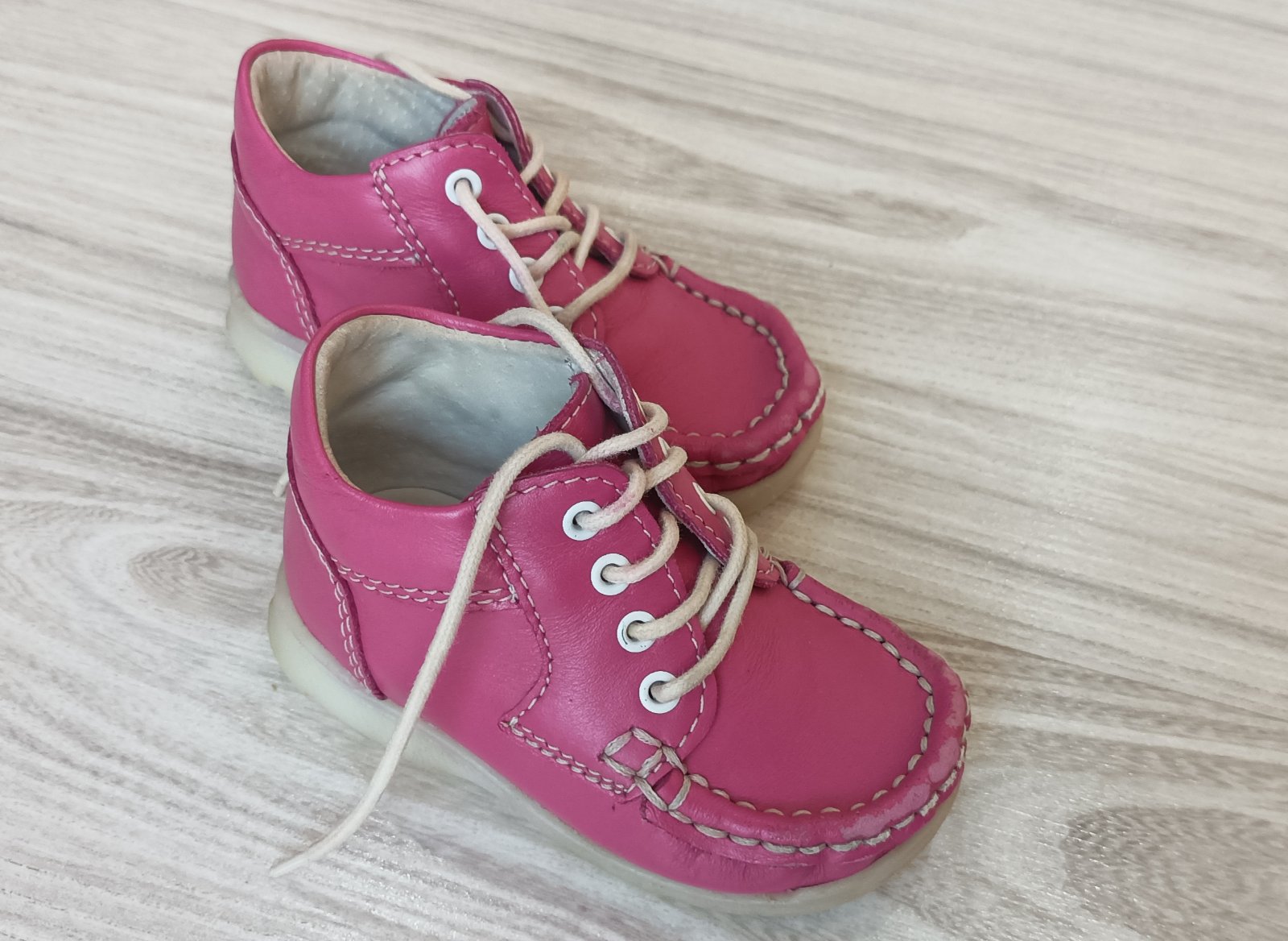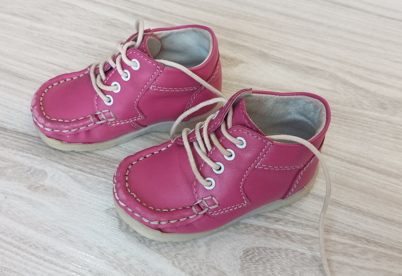 Predám krásne kožené cyklamenové topánky. Majú vnútornú klembu. Veľkosť 20, 12cm. Nosené v jari, žiaľ, už sú nám malé. Z predu akoby o odtieň stmavli, nešlo to odfotiť lepšie. Stále však krásne.