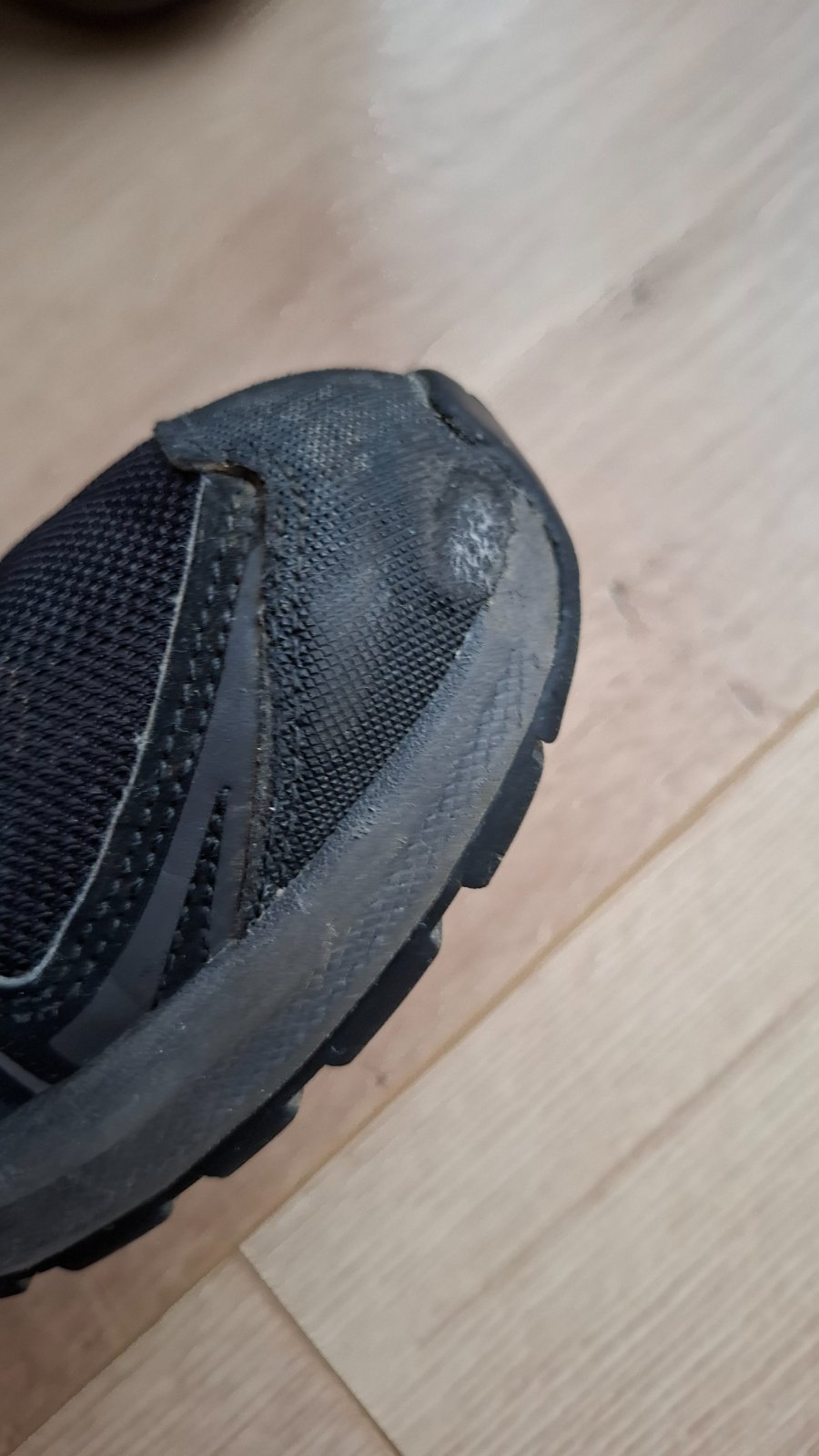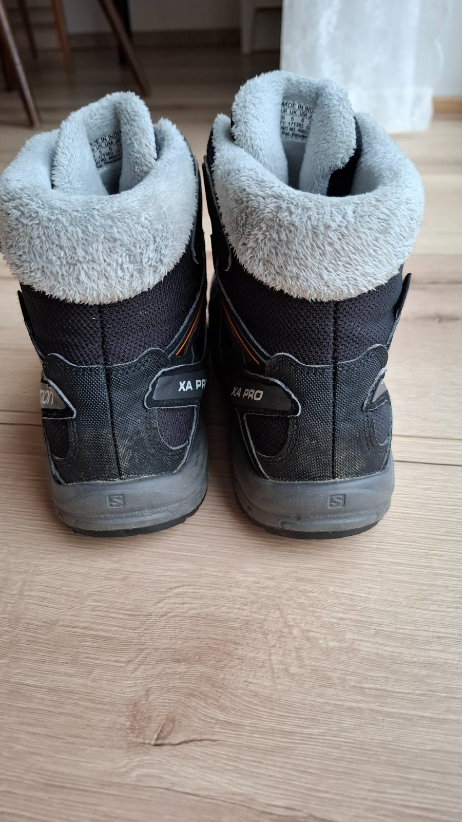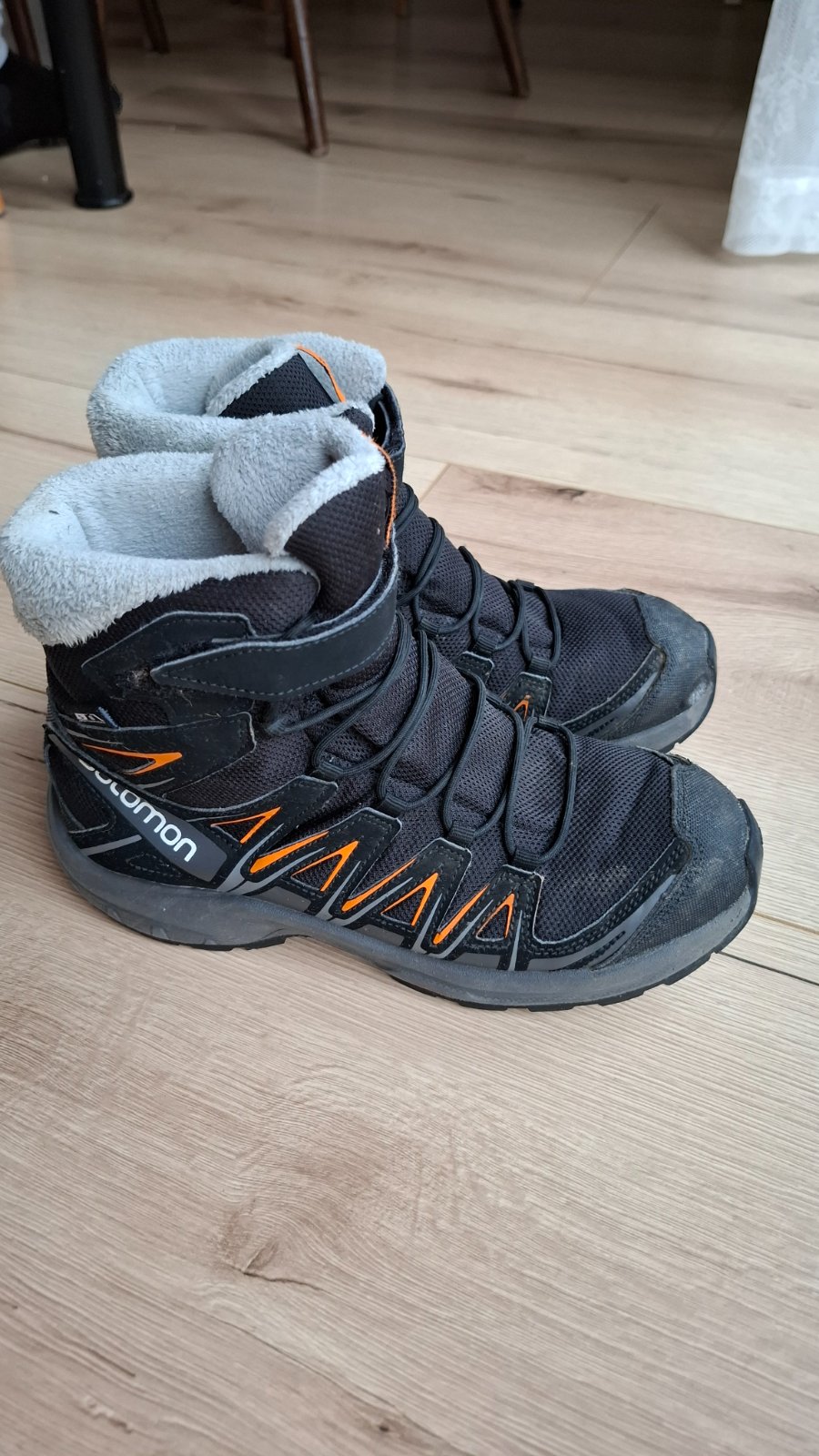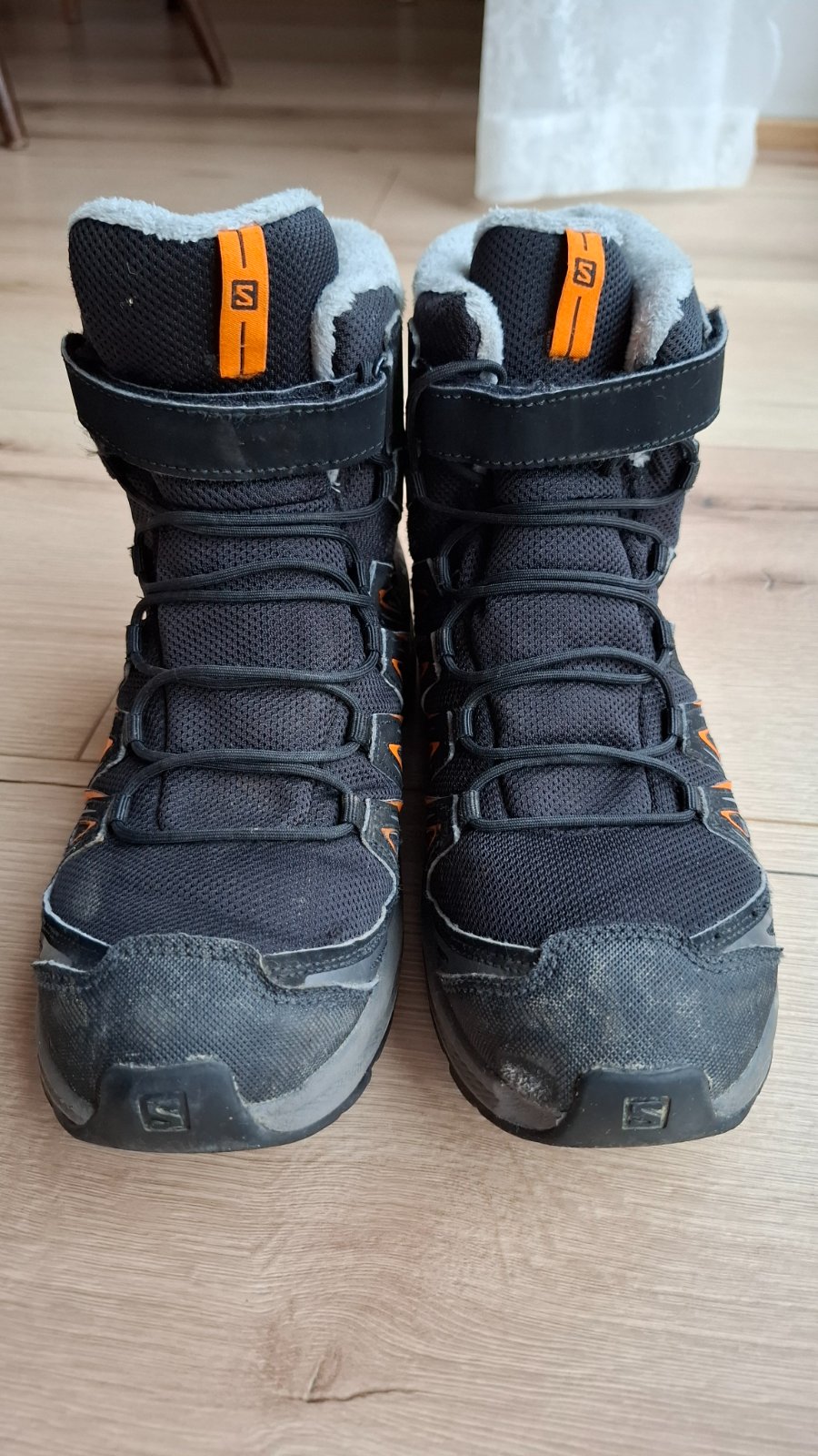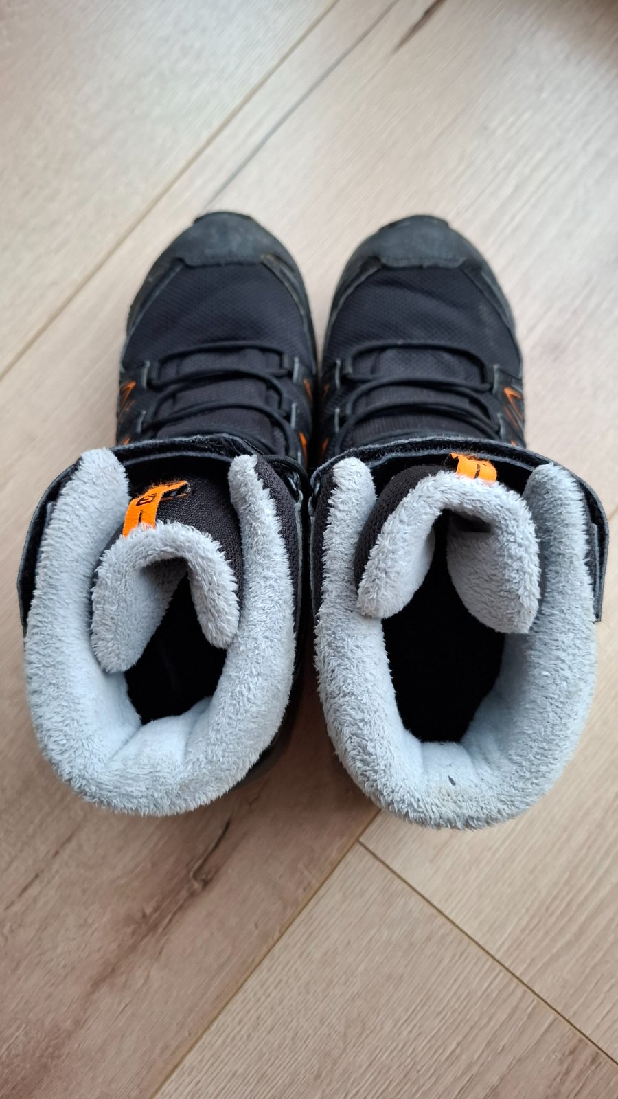 Zachovalé vyššie zimné topánky, vodeodolné. Vpredu na ľavej nohe je trochu šuchnutá špička z vnútornej strany, viď foto. Zohľadnené v cene. Je to len povrchové