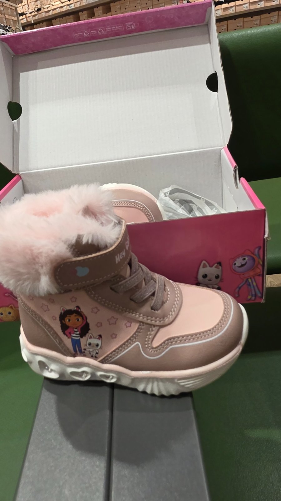 Krasne topanocky23 je tam sice kožušinka ale kludne aj na jar falošne viazanie jena gumicku nožka sa len lahko vsuva a zalepí..preťastli sme čislo posuvame ..pov cena35e..nnie su blikajuce.