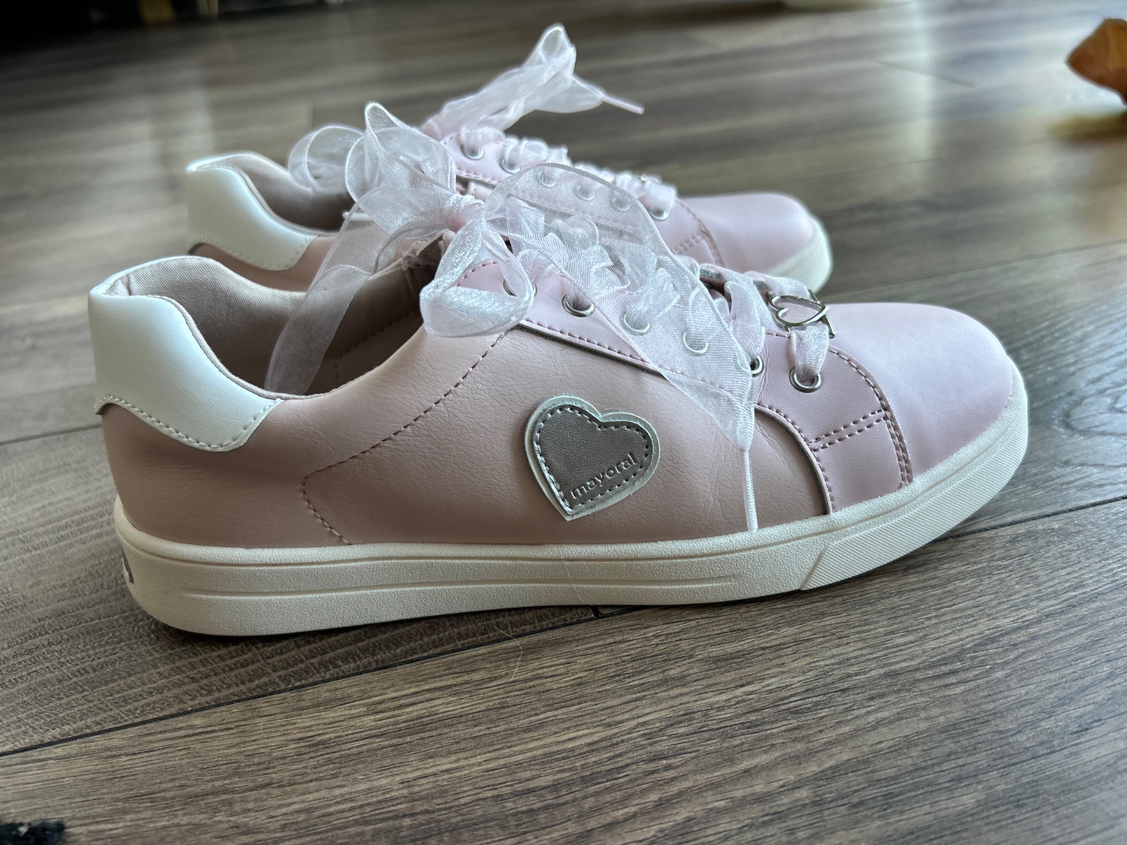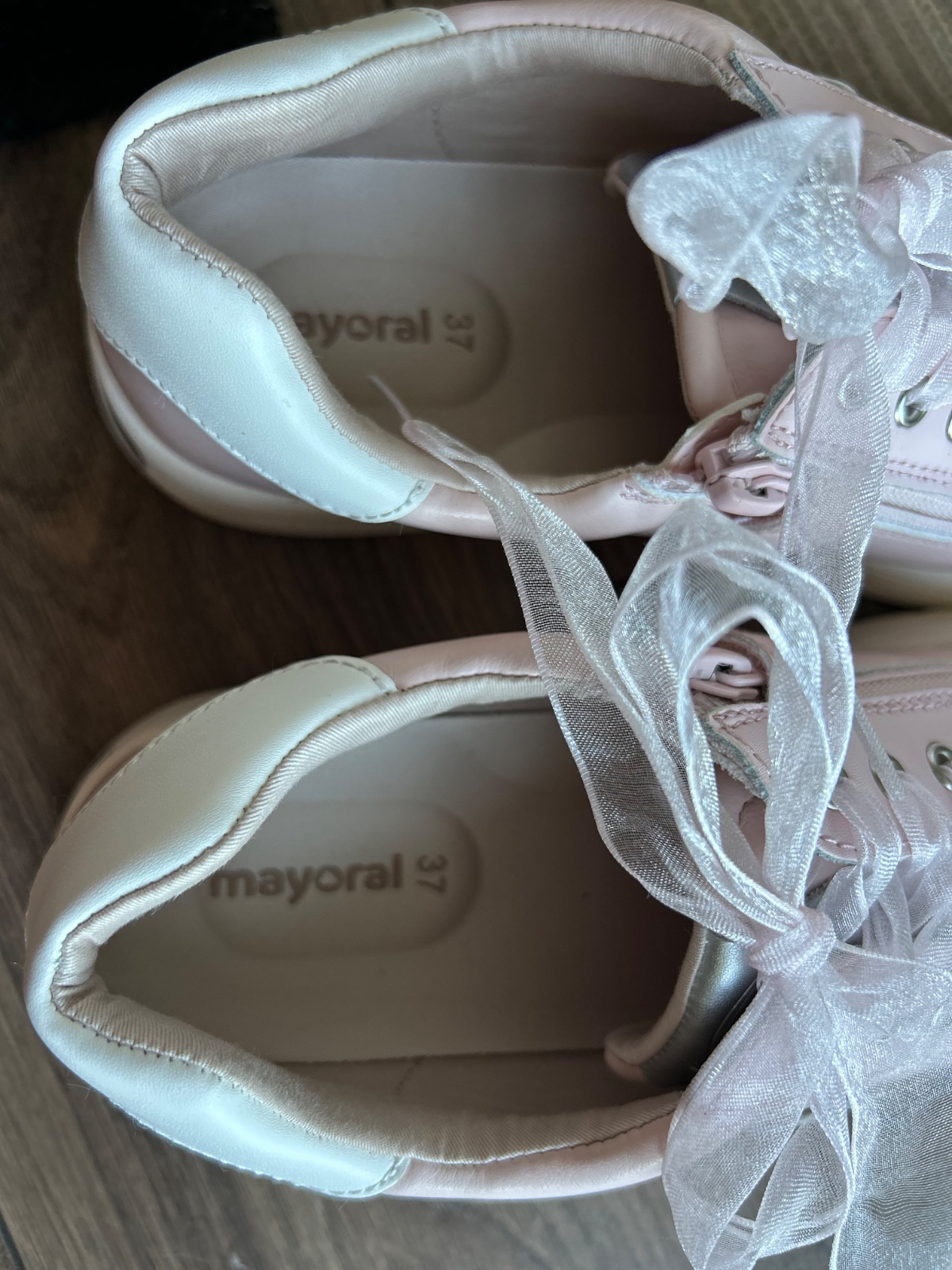 Ponúkam ma predaj krásne dievčenské tenisky Mayoral. Tenisky sú v bezchybnom stave ako nové. Boli obuté len pri jednej slávnostnej príležitosti.