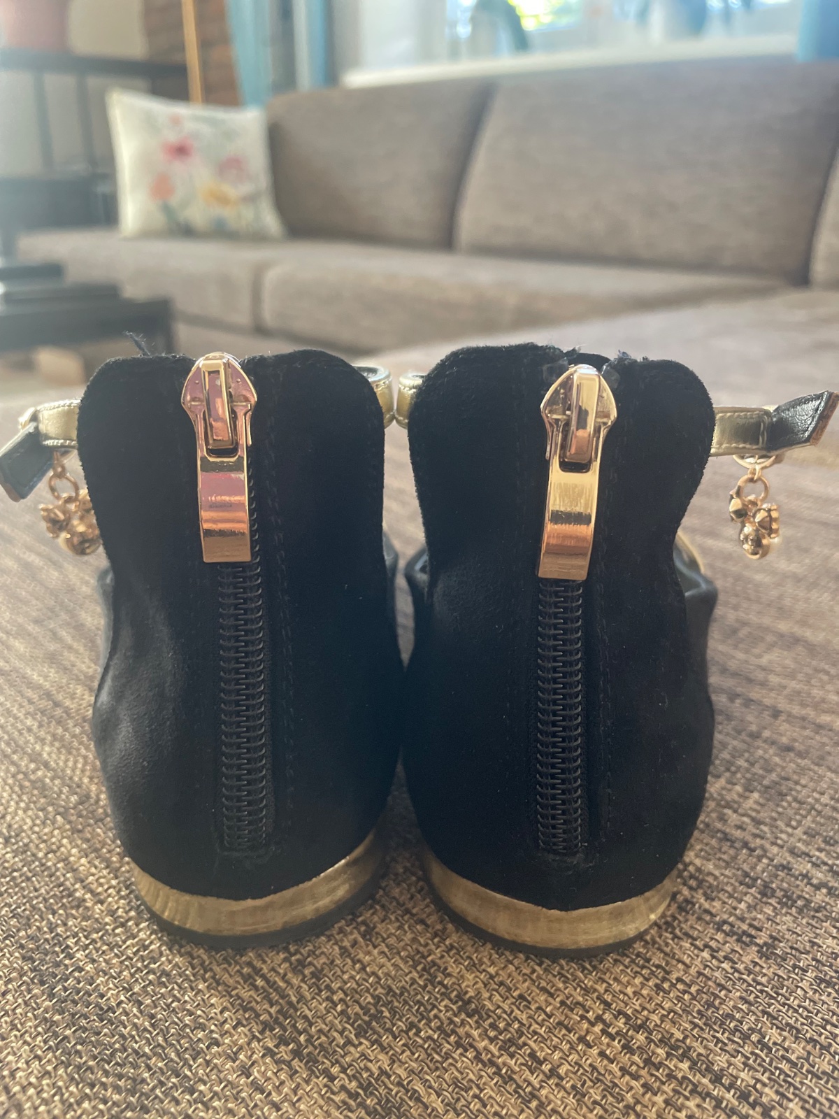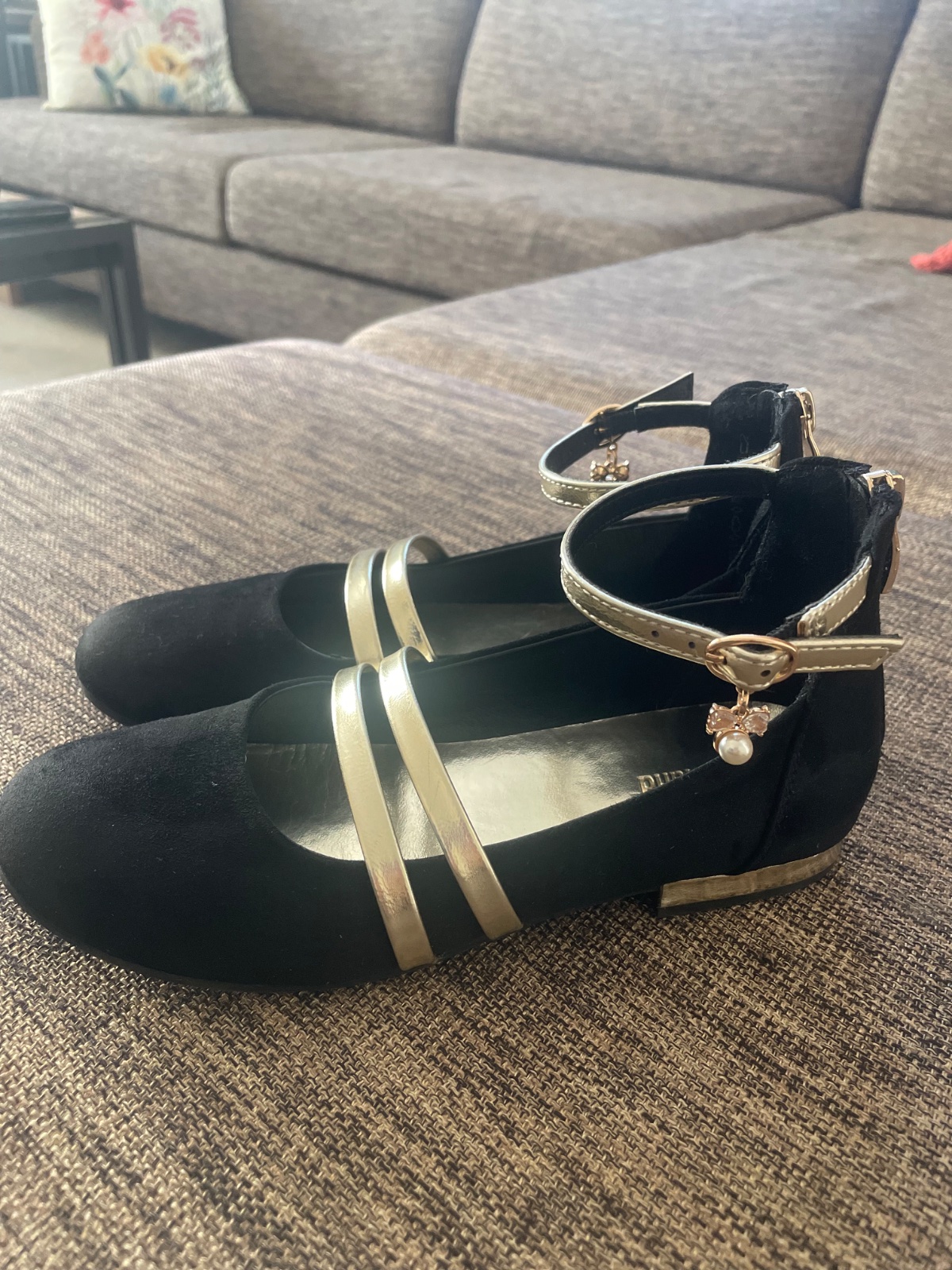 Slávnostné topánky s flitrami a opätkom. Podpätok 2 CM. Použité 2x. Bez poskodeni. Kupované 4/2023, takže ešte v záruke. Doklad je súčasťou kúpy. VN.dlzka je 19 CM.