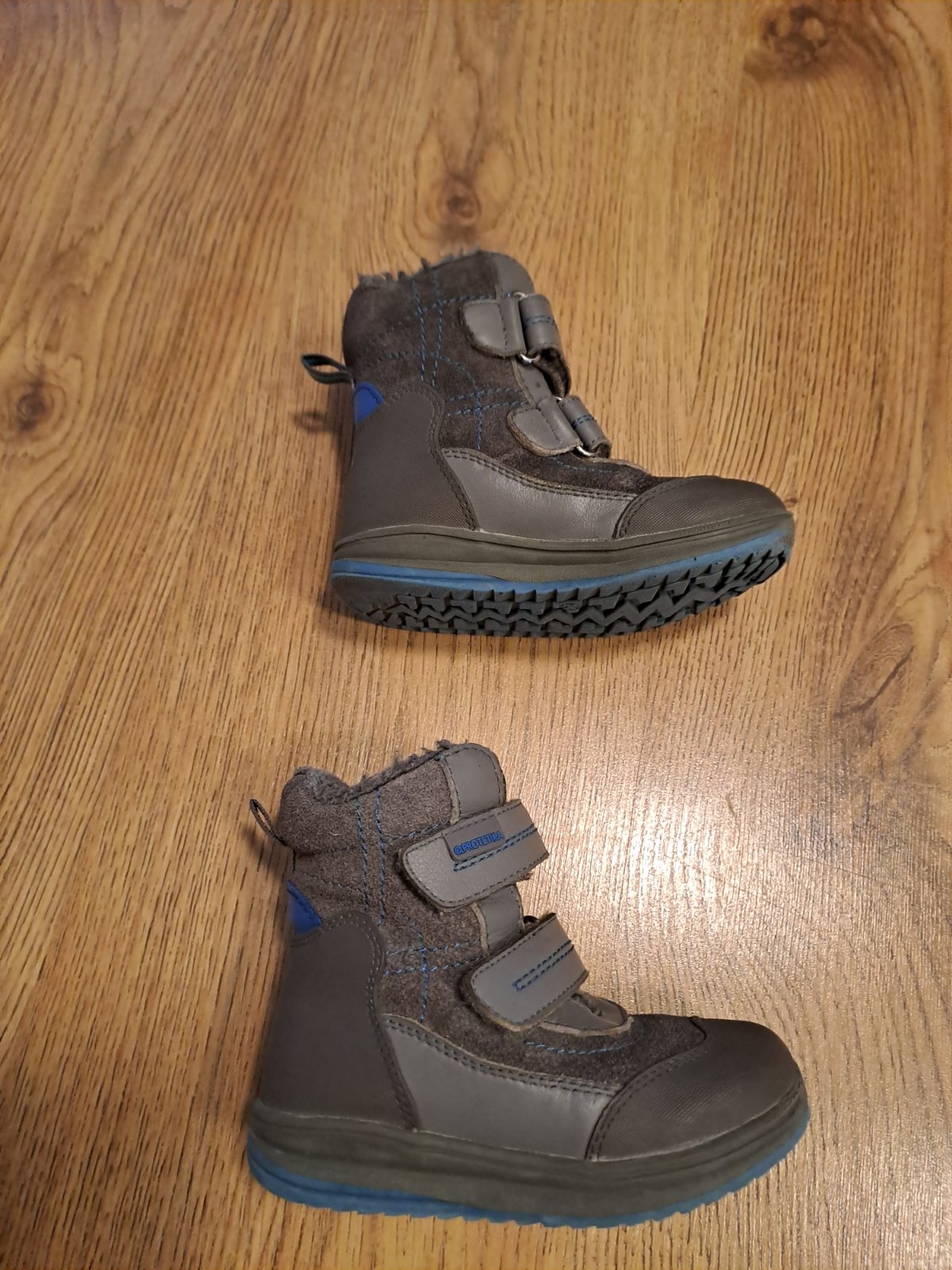 Teplé kožené topánočky na suchý zips. Ešte urobia dobrú službu. Cena je viac než dobra na ich stav, neváhajte inak skončia v charite.