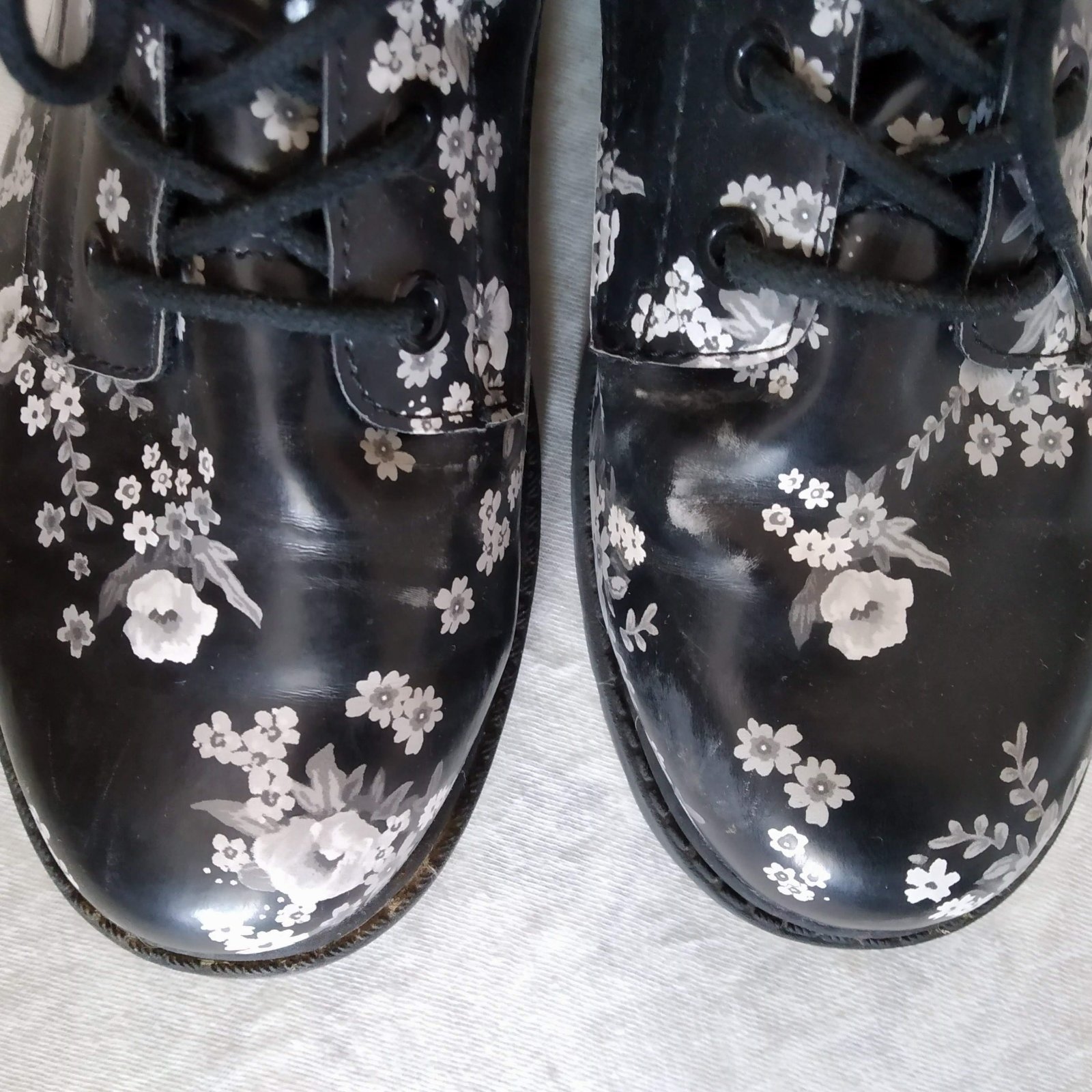 Topánky sú málo nosené, ale i napriek tomu je vpredu vyšúchaný kvet (ako sa topánka ohýbala) je to nafotené.