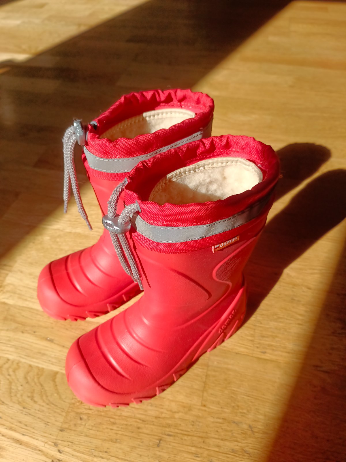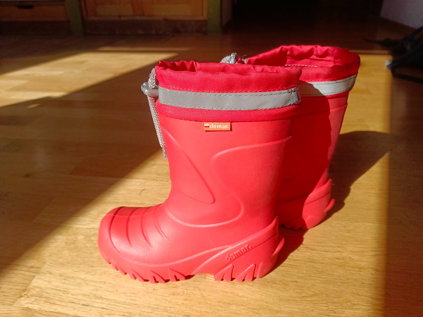 Minimálne nosené ultra ľahké gumáky Demar, dvojčíslo 30/31, syn ich ani nestihol nosiť, rýchlo mu podskočila noha, mal ich pár krát obuté. Vložka z ovčieho rúna, je vyberateľná.