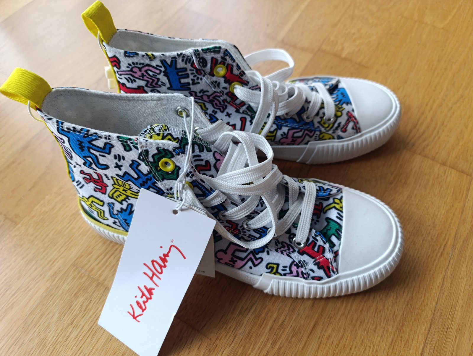 celkom nove klasicke clenkove platene tenisky typu sneakers so vzorom od Keith Haring, velkost 39 sedi. Zial dcera ich nevyuzije, aj ked sa jej pacia.