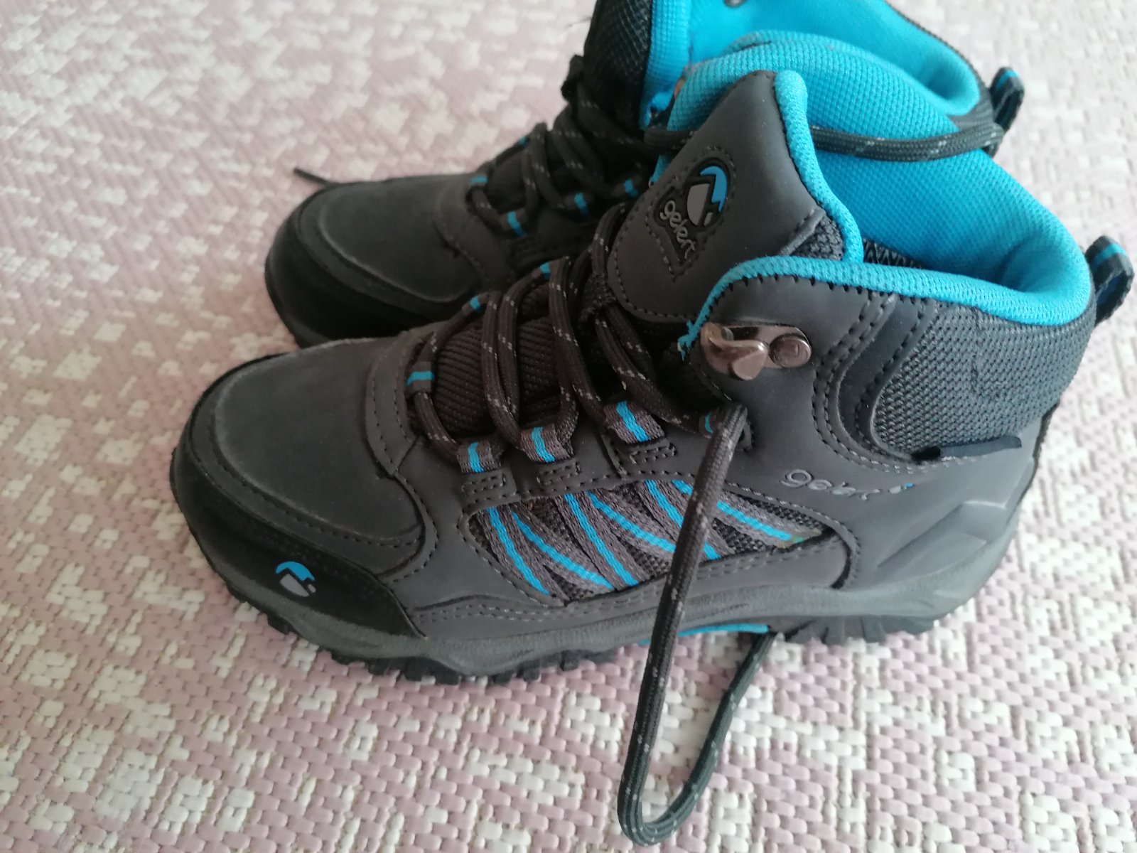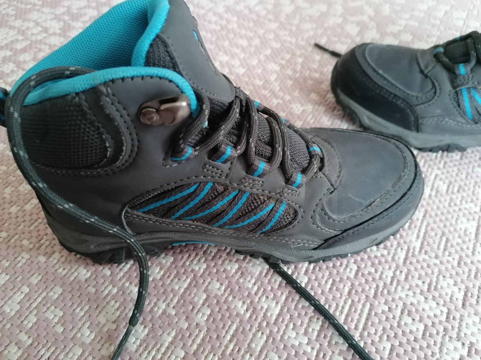 Nepremokave topanky (goretex). Nezateplene (vhodne na jesen, turistiku, nevhodne na zimu). Po jednom dietati. Opotrebovane beznym nosenim. V originalnej krabici. Velkost: 32