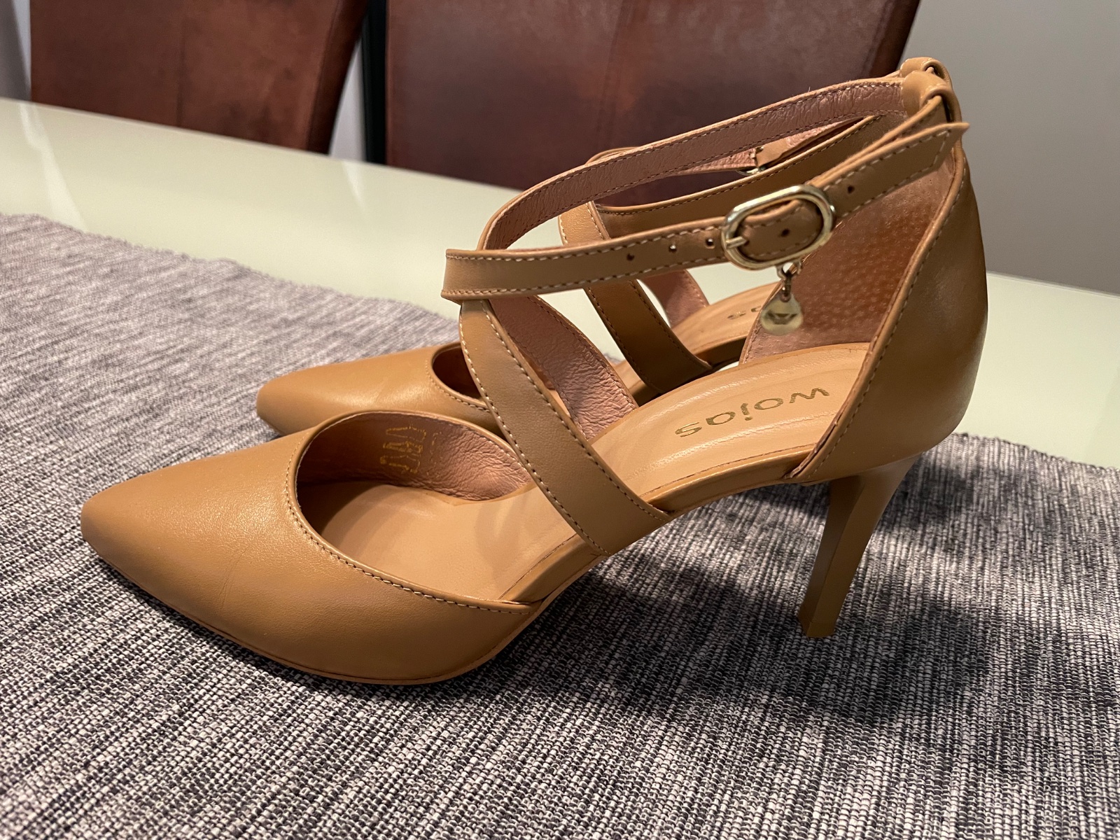 Elegantné lodičky so zapínam okolo členku značky Wojas 2x obuté, č.38, výška 8cm, PC okolo 70eu, teraz 25eu