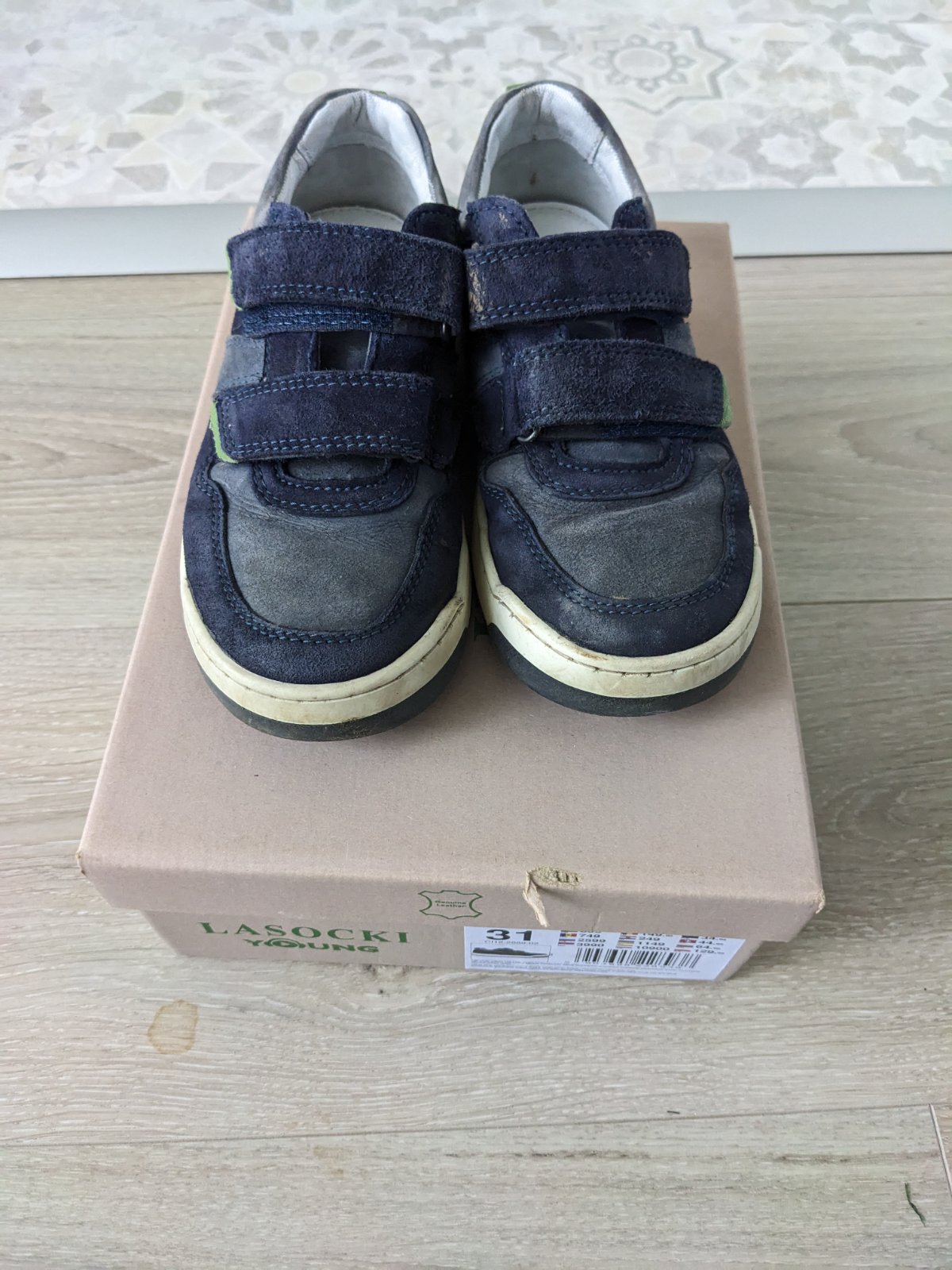 Velmi pekne, kvalitne topanky, obute 3x,vid foto. Material brusena koža, krabicu už k nim nemám. Vnútorná dĺžka cca 20,3cm ťažko sa to meria, nedá sa vybrať vložka.