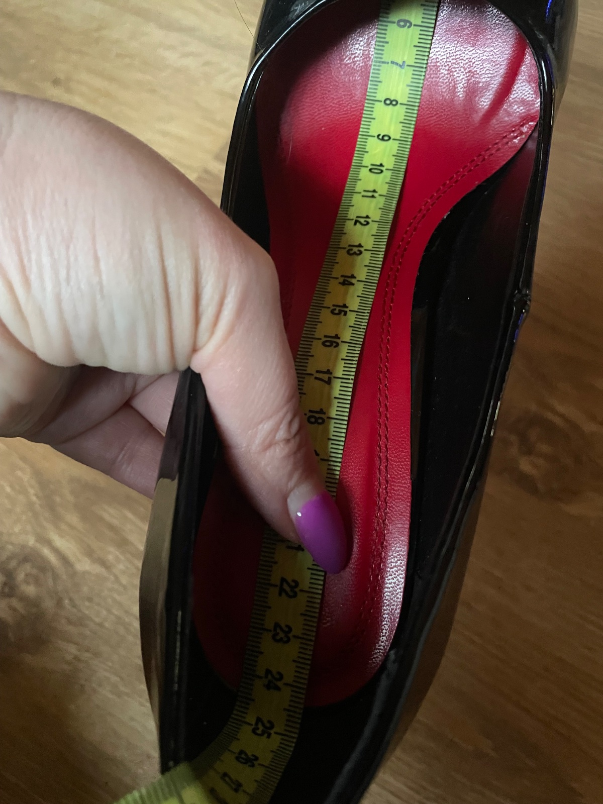 Krasne lesklé lakované lodicky, vnútro úplne ako nové, kedže som ich mala obuté len s ochrannou vložkou Cca 24,3