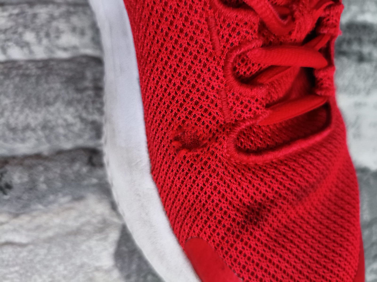 Tenisky nosené majú malú dierku na látke viď.foto dá sa to zašiť ,šuchnute špičky .Určite sa dajú nosiť aj von alebo na telesnú .VD 25,8