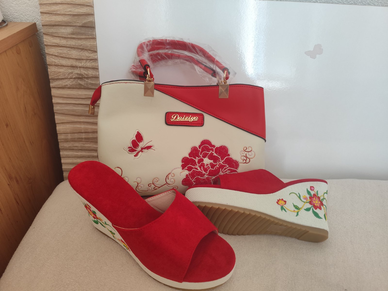 Nenosené kabelka aj šľapky na oboch vyšívané cena spolu