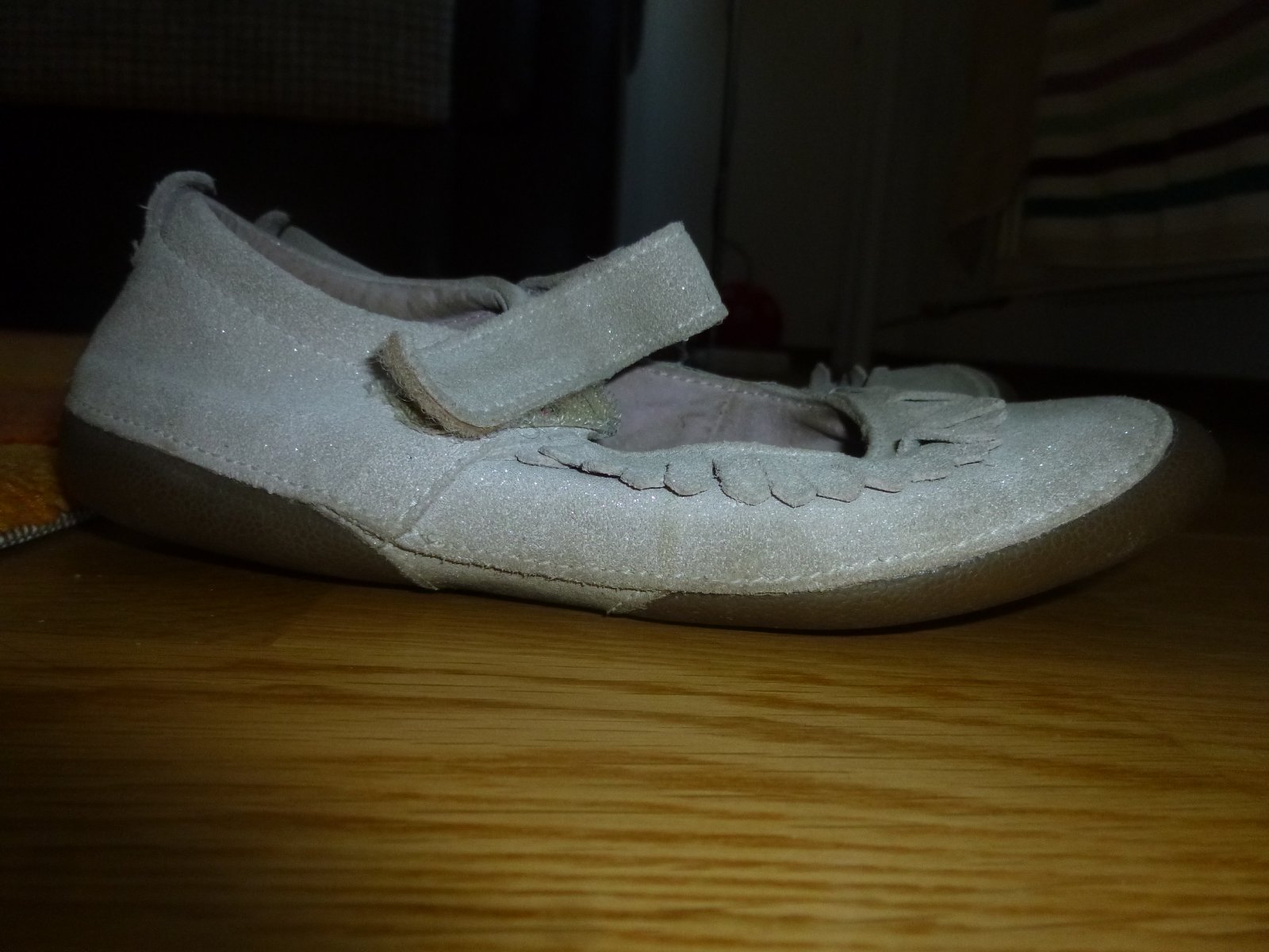 Dievčenské balerínky Reserved, veľkosť 33. Balerínky sú na prednej a zadnej strane trochu odreté a tiež na podrážke jednej balerínky je ryha, čo ani netuším ako to dcérka dokázala spraviť 🙈 ale chy...