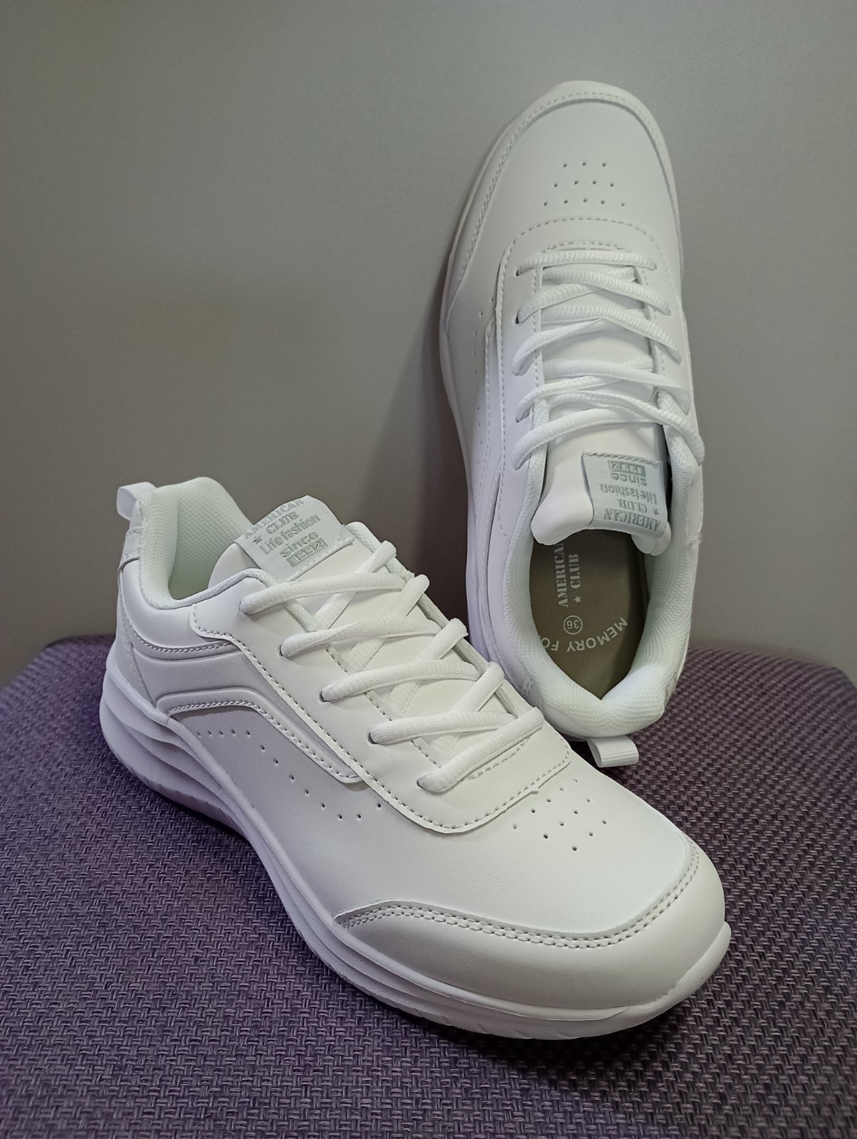 Ľahučké biele botasky zn. American club, majú stielku z pamäťovej peny.
