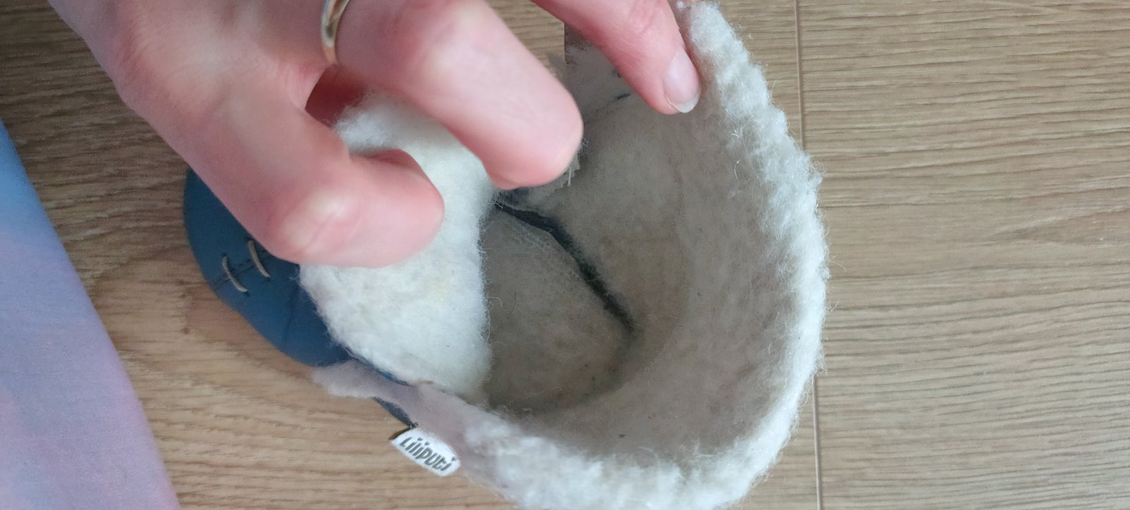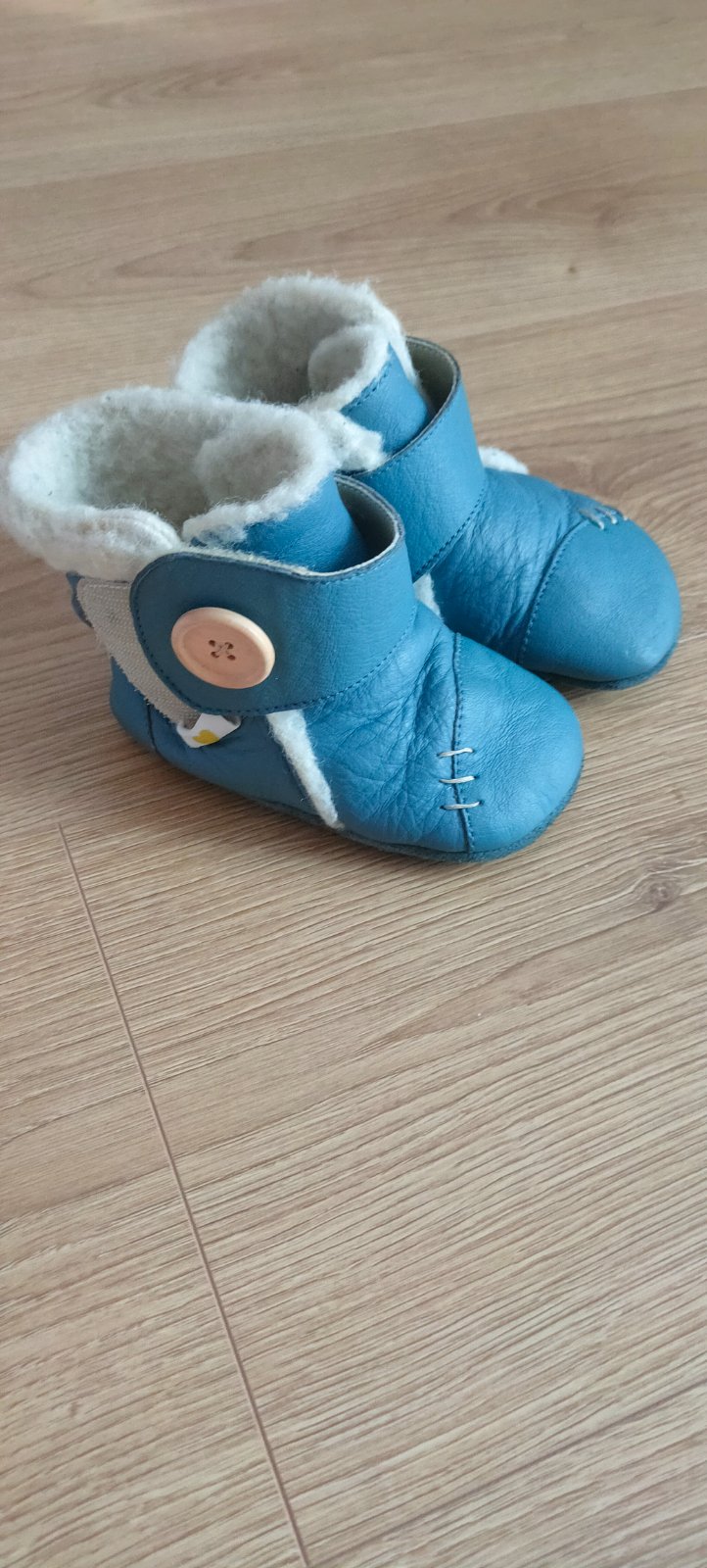 Zimné capačky do kočíka zateplené ovčím rúnom. Veľkosť L, 20-21, vnútorná dĺžka 14,8cm. Používané, zachovalé.