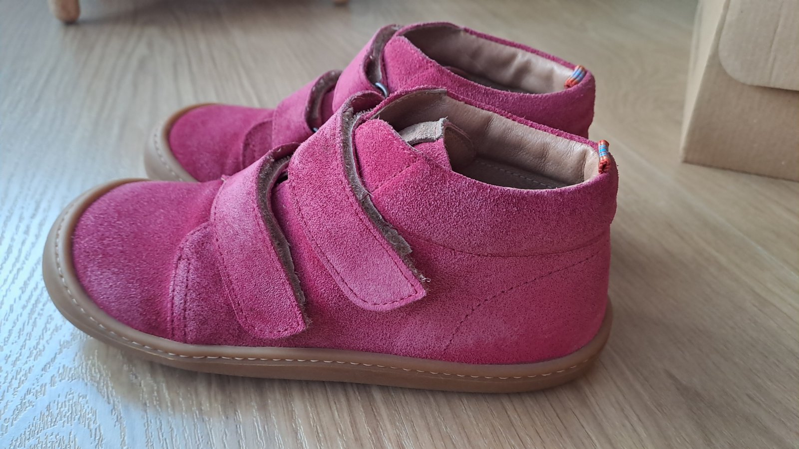 Kožené barefoot členkové topánky zn. KOEL4kids - velour fuchsia, veľ. 33.