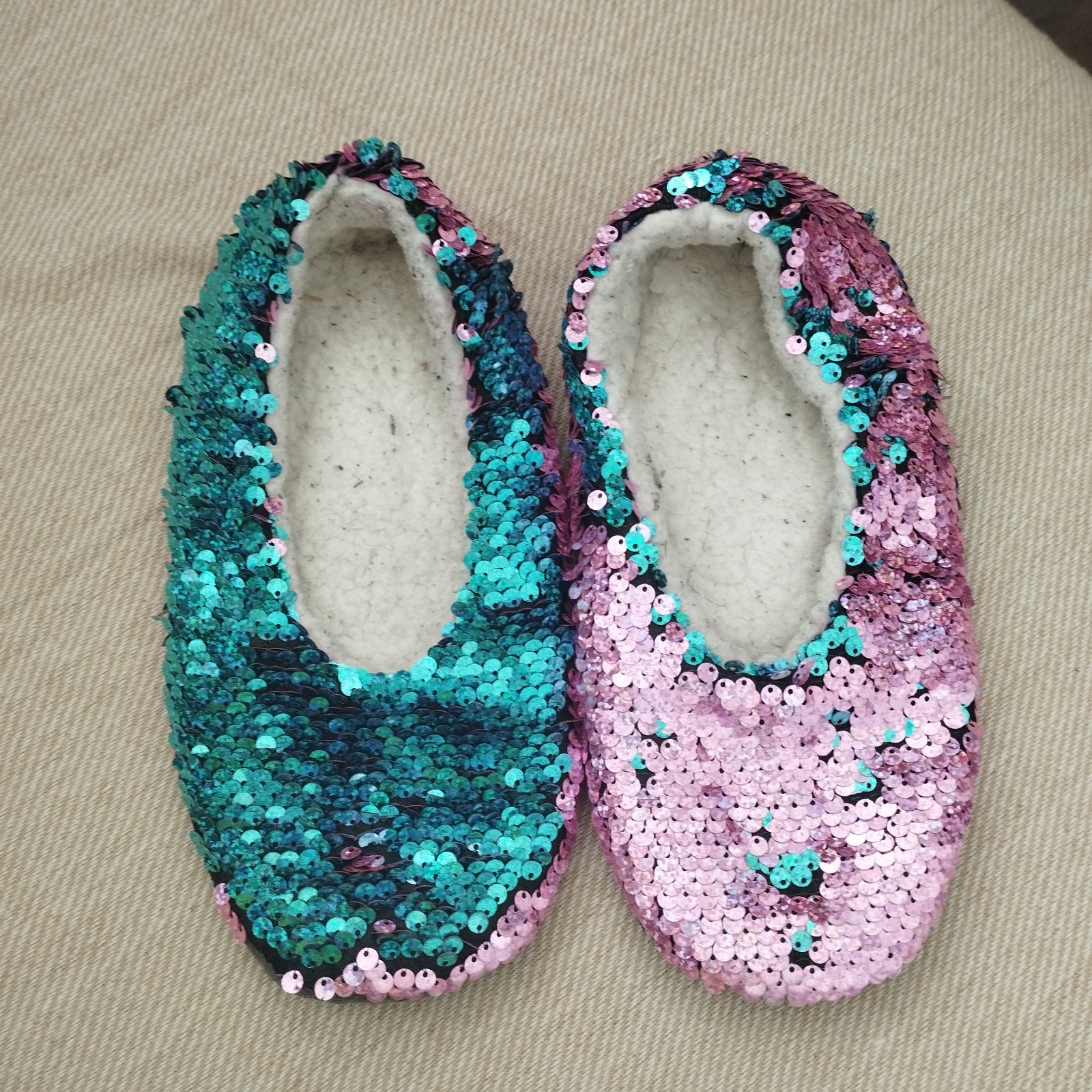 Krásne flitrové teplé papučky, meniace sa na modrú alebo ružovú farbu, do 20cm