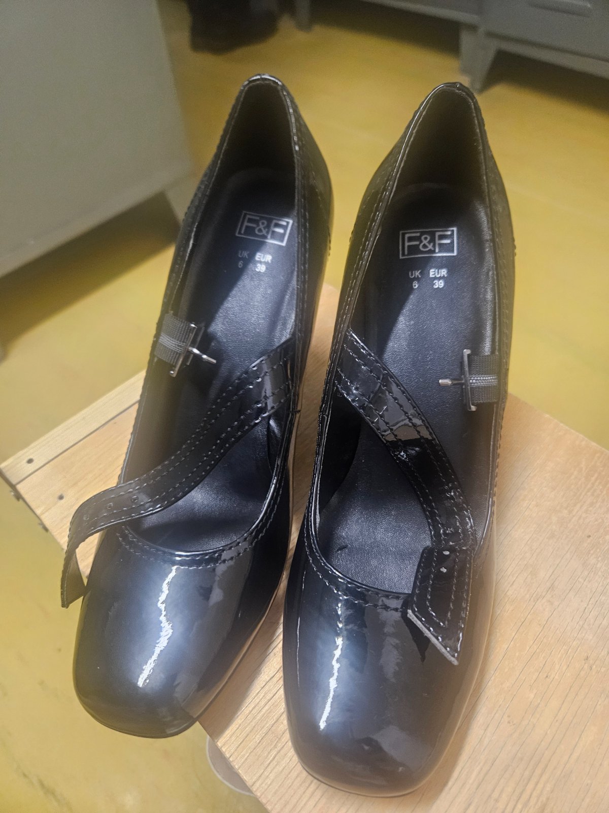 Čierne lodičky s otvorenou špičkou na platforme. Obute pár krat F&F 38 Dobry stav Vaha cca 600gg