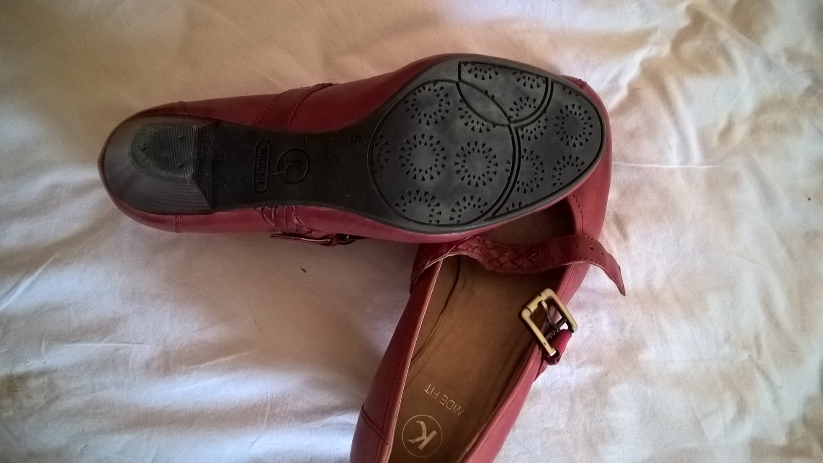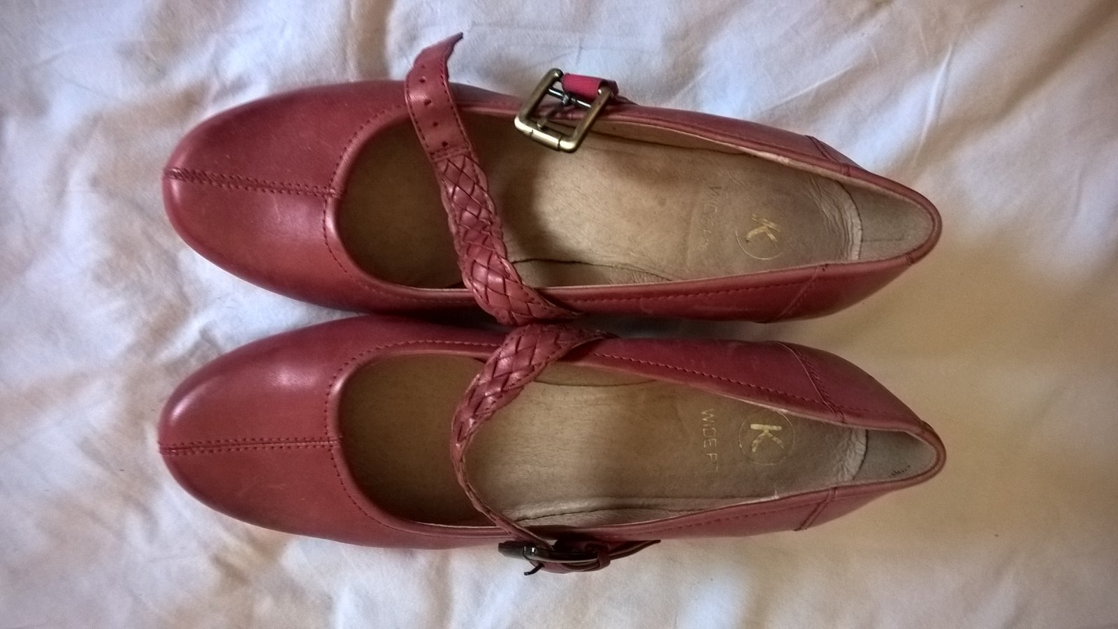 lodičky pekná tmavočervená farba opätok 4 cm v predu širšie zapínanie na pracku žiadne poškodenie
