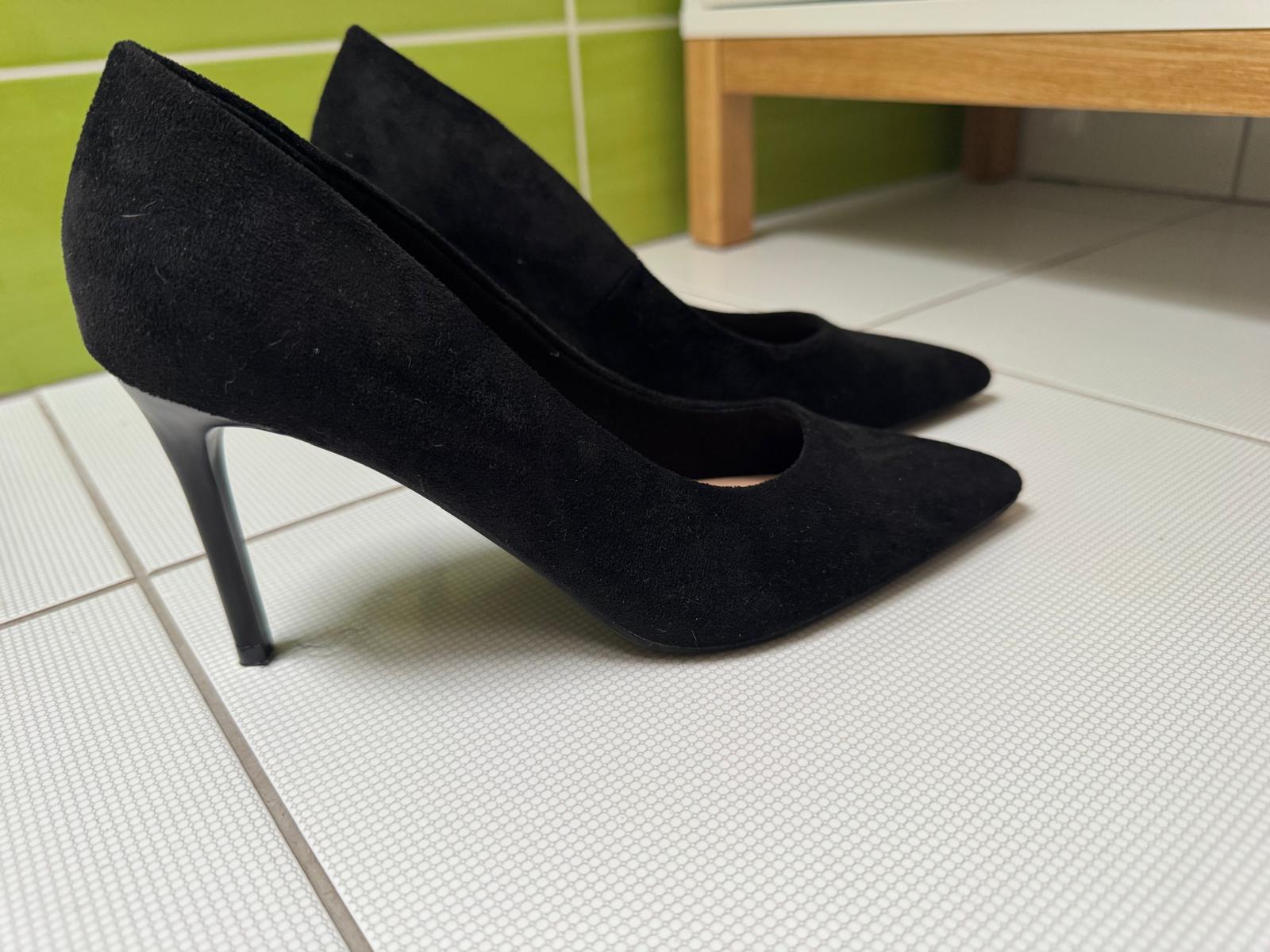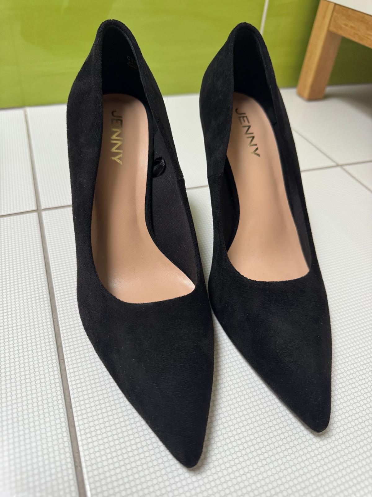 CIerne semišové lodičky zn. Jenny. 1x obuté. VN dlžka: 24cm, opatok 7,5cm.