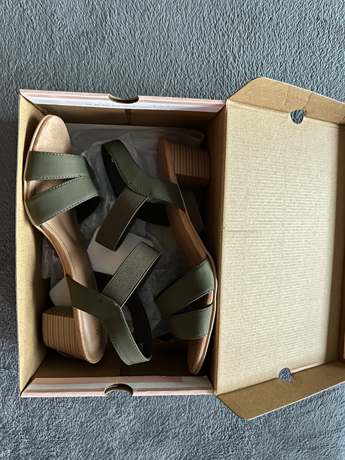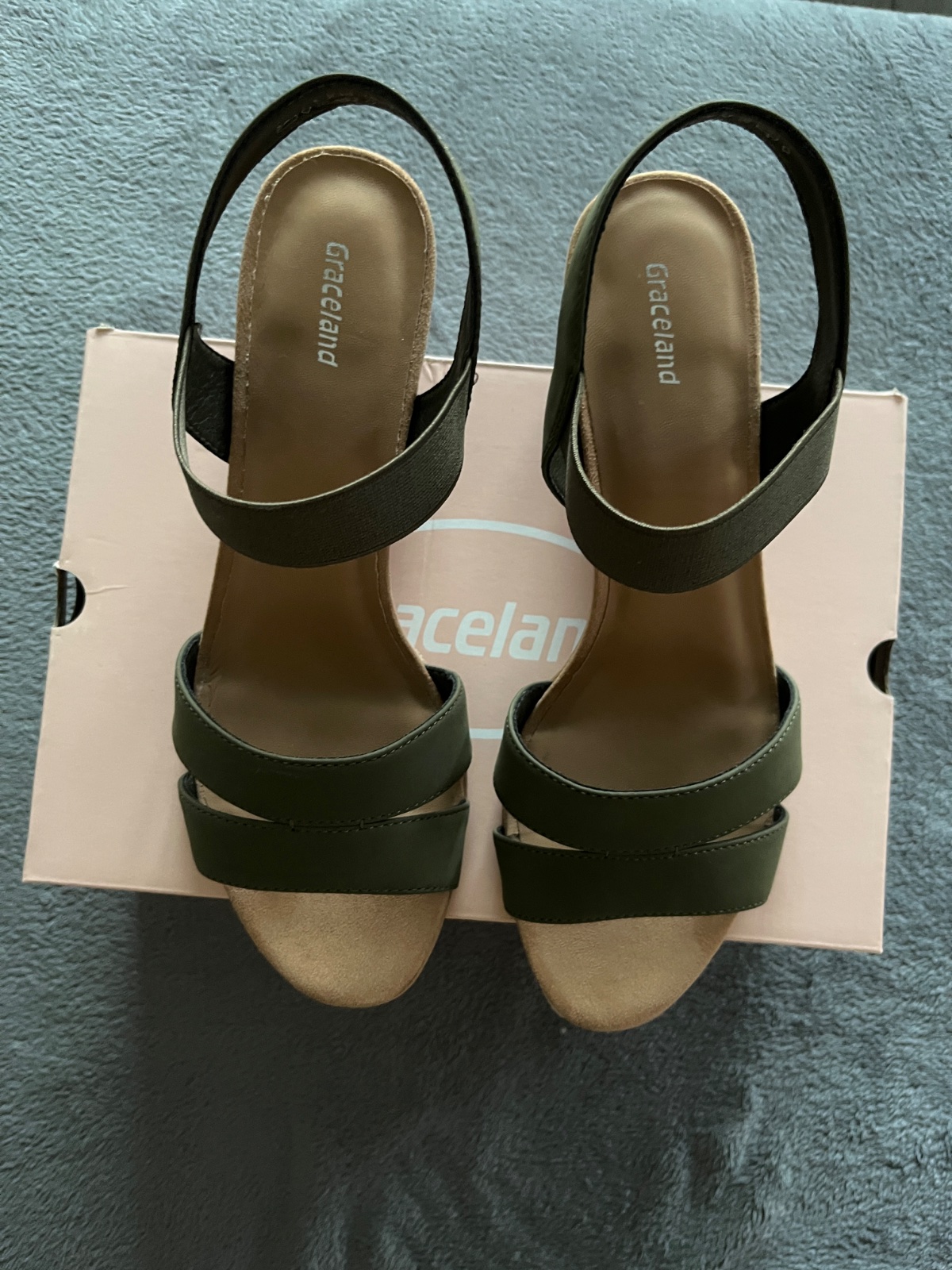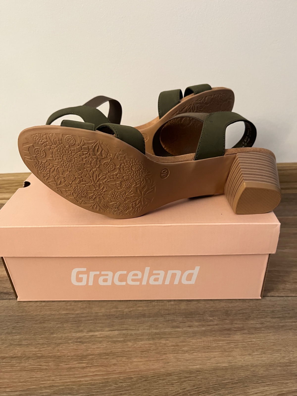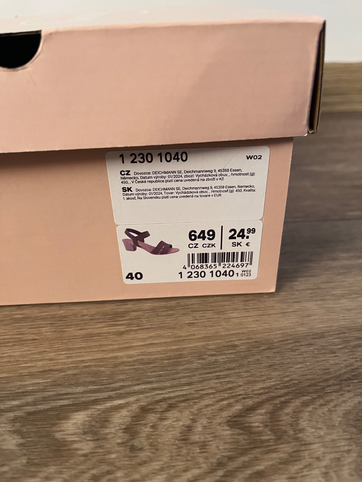 Sandále neboli nosené, majú veľkosť 40, bez zapínania, okolo nohy je gumička.