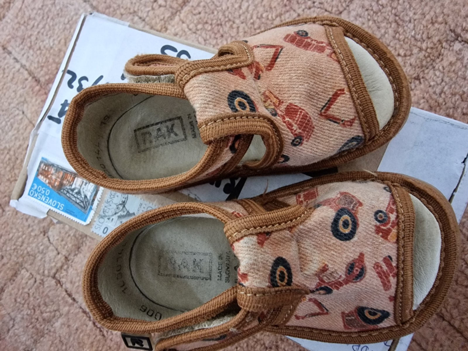 Predam nosene papučky Rak Matilda. Normalne opotrebovanie,žiadne vady-uplne funkčne papučky. Tieto sme nosili von na prve kroky. Velkost:19