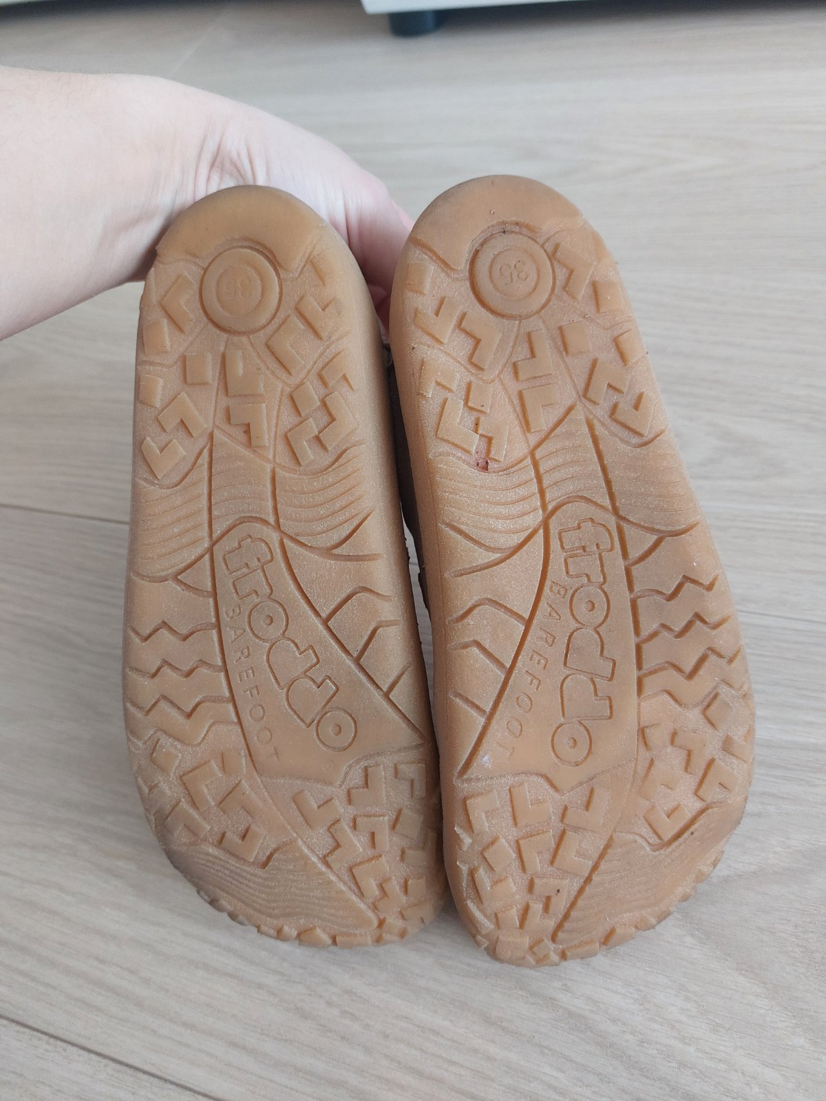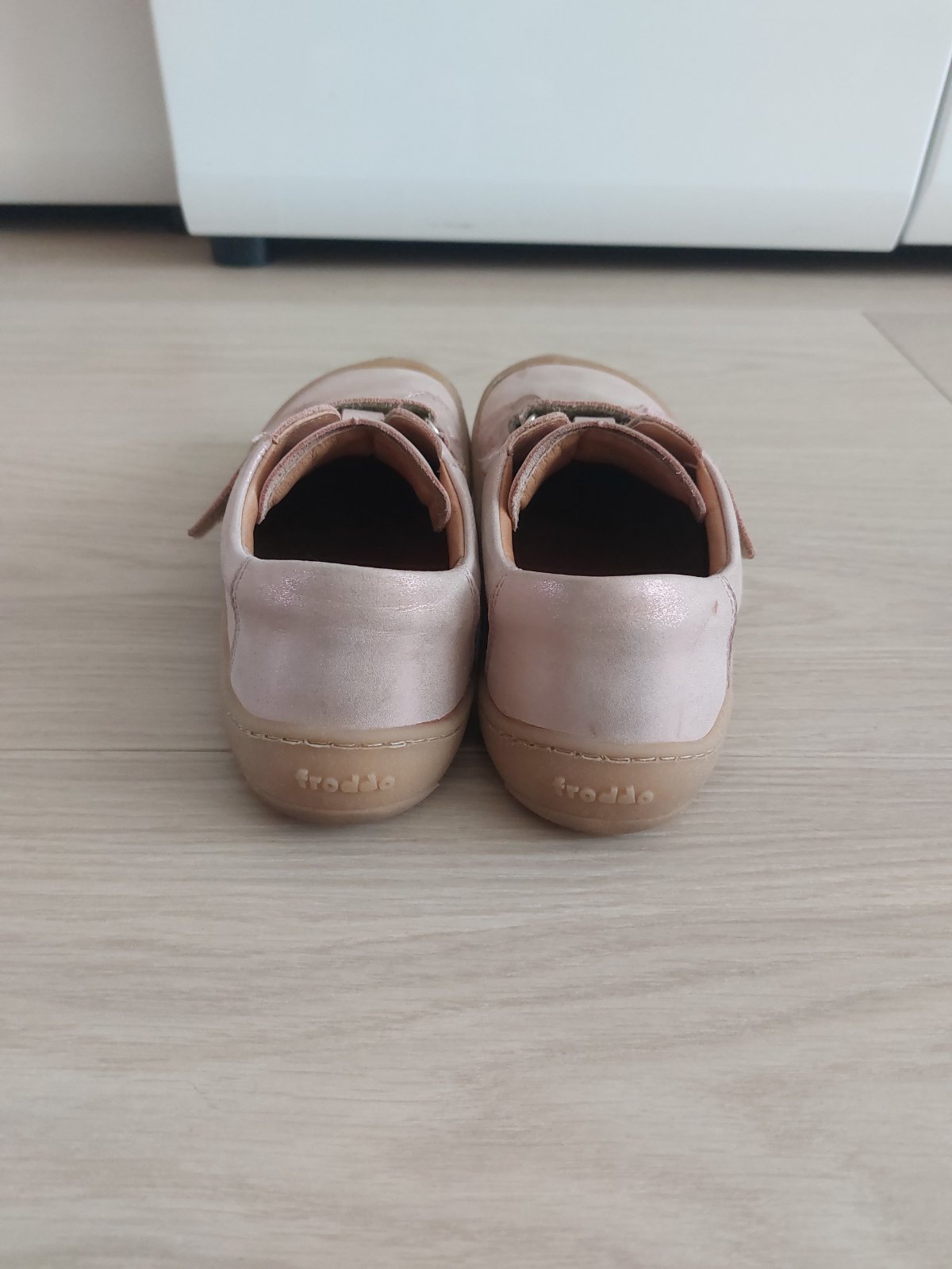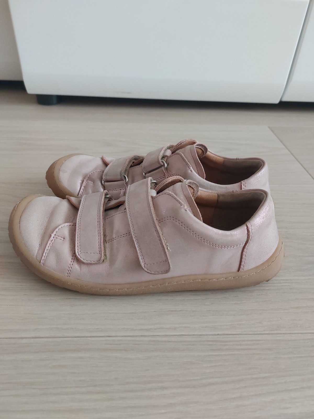 Predám celoročné barefoot kožené topánky zn. Froddo barefoot base pink trblietky, veľk. 35, vnútorné rozmery: 22,9 cm x 8,6 cm. Topánky kupované 04/2025, sú v dobrom zachovalom stave, bez poškodení, len bežné opotrebenie. Vhodné aj na normálne široké nôžky a dajú sa pekne utiahnuť aj na užší členok. Pôvodná cena 68 eur.