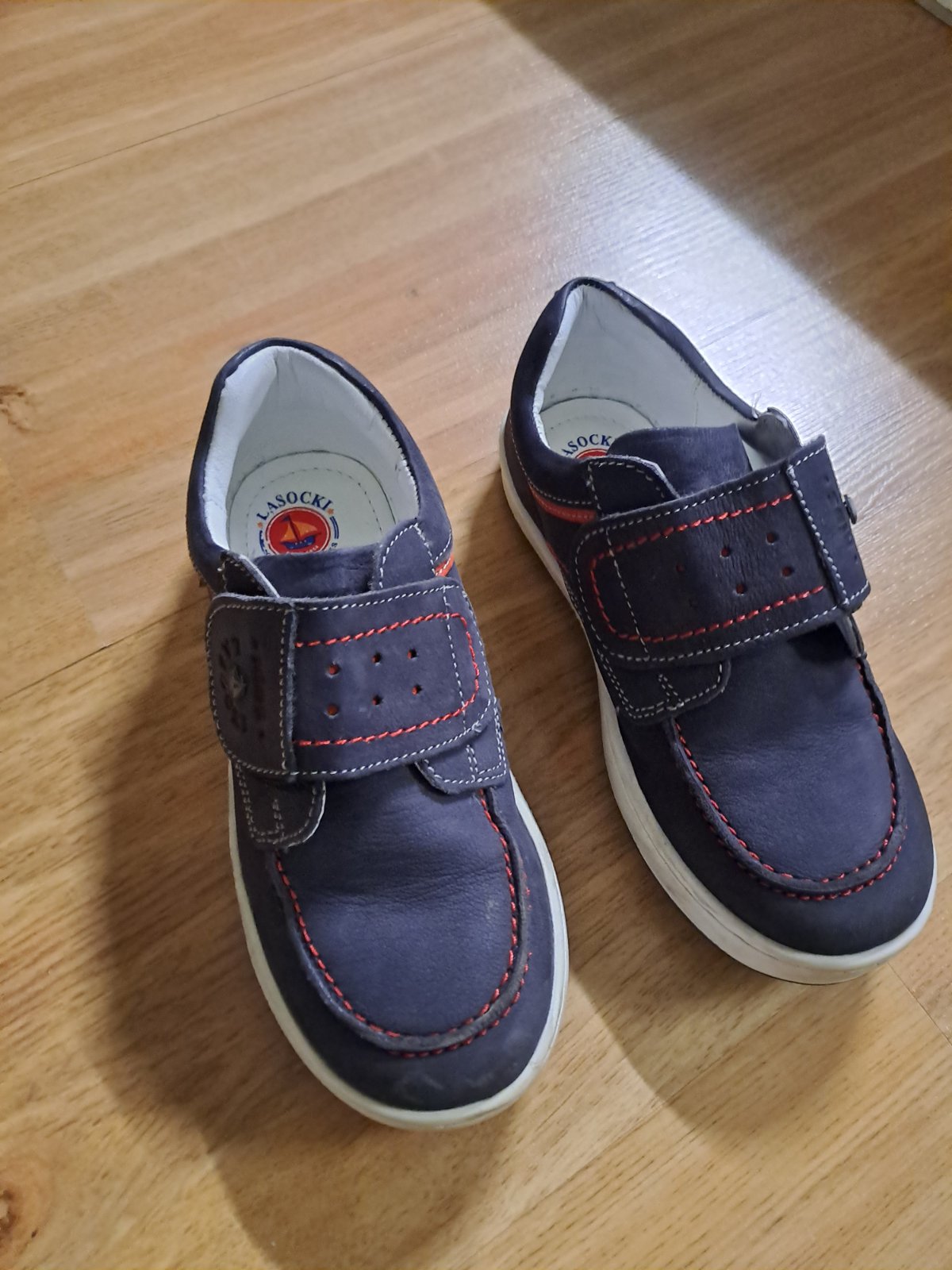 Predám chlapčenské jarné/jesenné vyššie topánočky. Kožené, veľmi pohodlné, farebne univerzálne - modro hnedé. Zapínanie na suchý zips, zipsy parádne držia. Bežne nosené, bez poškodení, známky bežné...