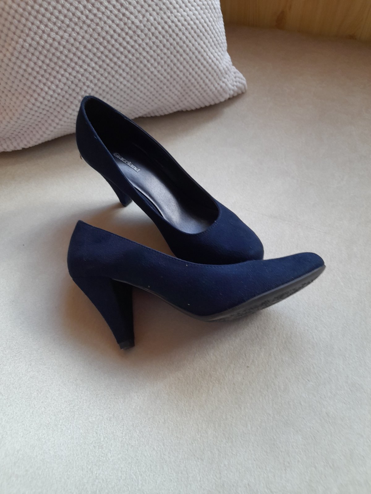 Predám semišové tmavomodré lodičky na 8 cm podpätku. Lodičky boli obuté len 1 krát.