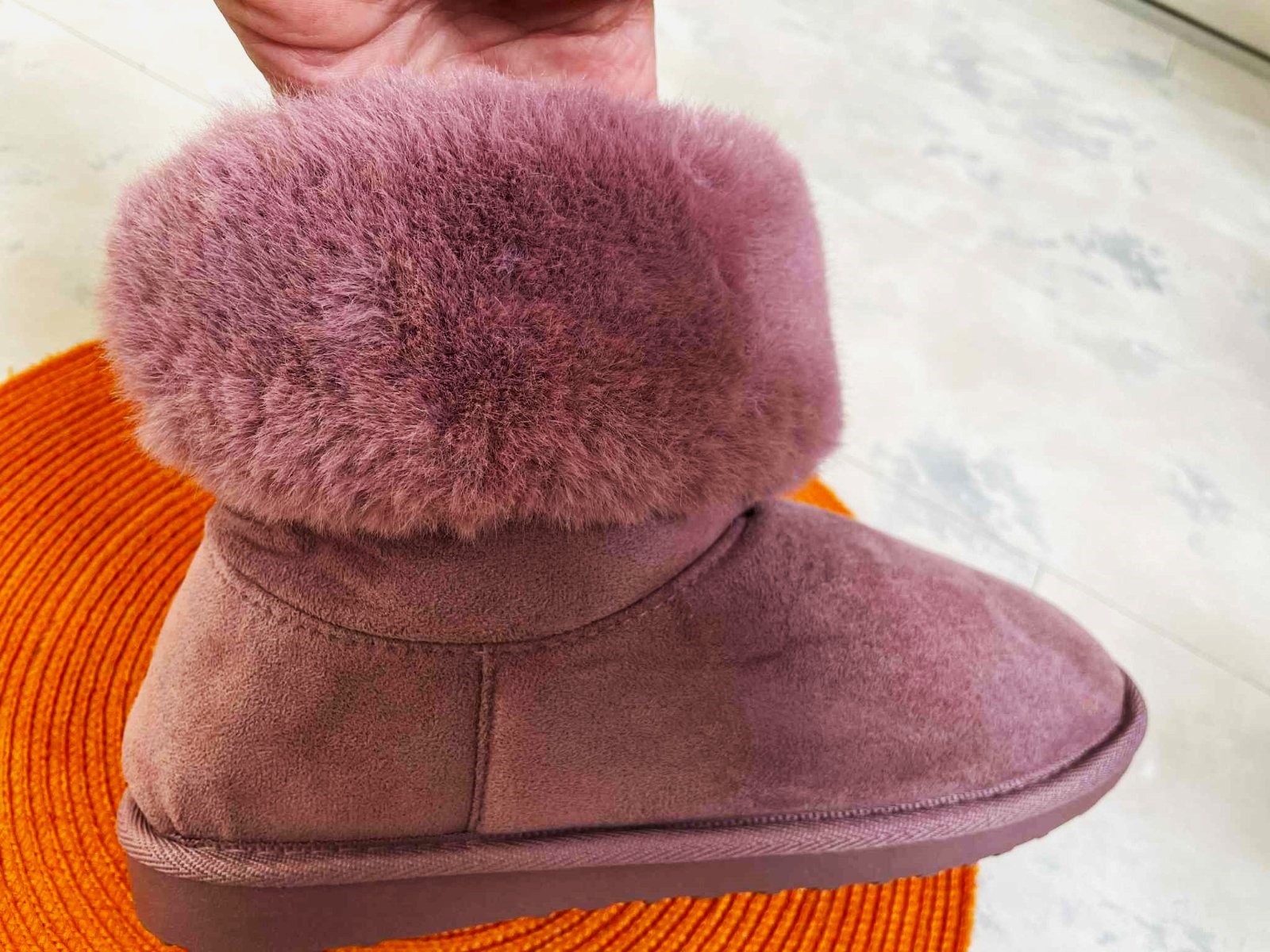 2 x obuté teplučké čižmy s krásnou hustou kožušinkovou obrubou,celé vnútro vystlané hustou teplou kožušinou,ľahúčke,krásna ružová zastretá farba,uvádzaná veľkosť 38/39,ale je to skôr na veľkosť 38,vyššia guma - nenamoknú,povrchová úprava syntetický textilný semiš,výborne sa čistia