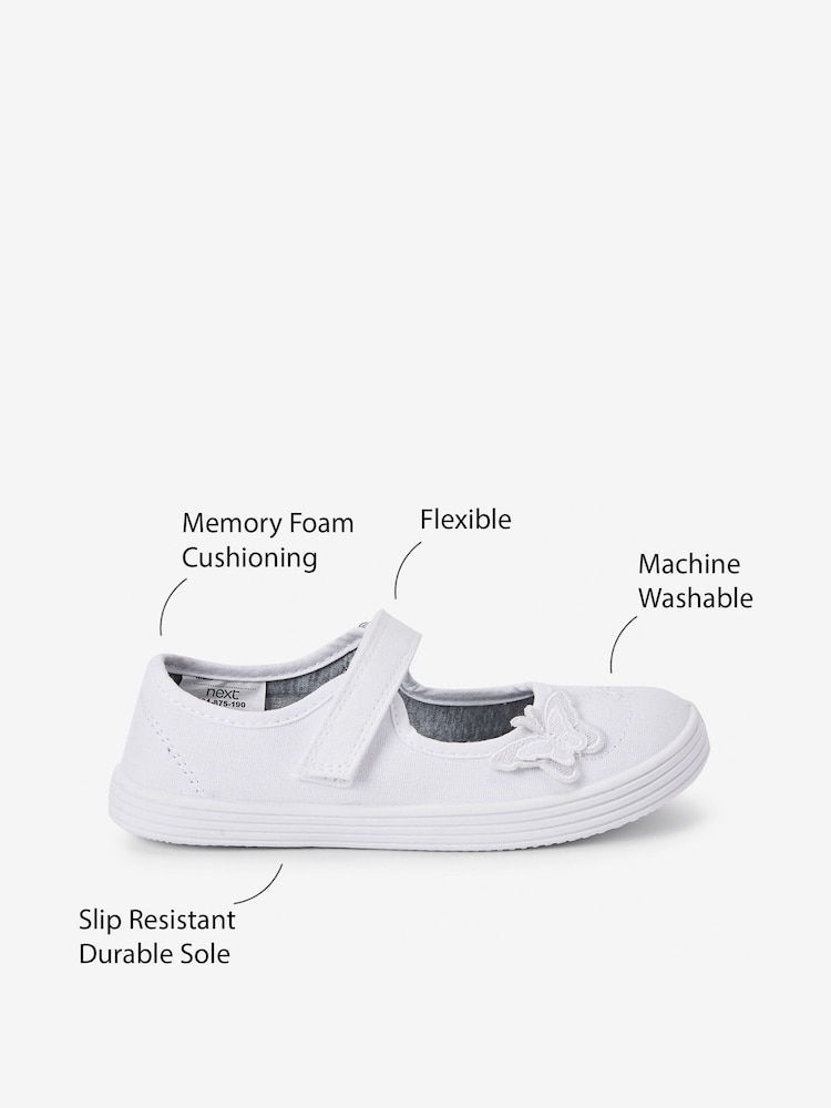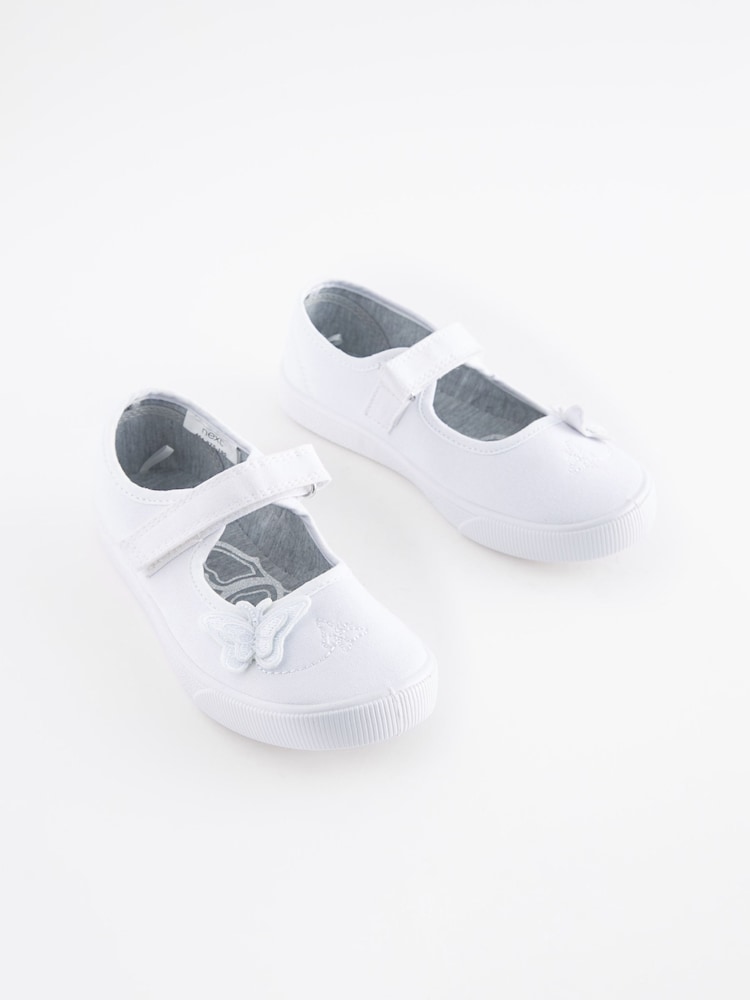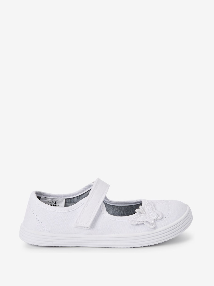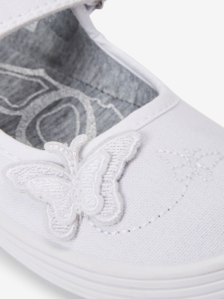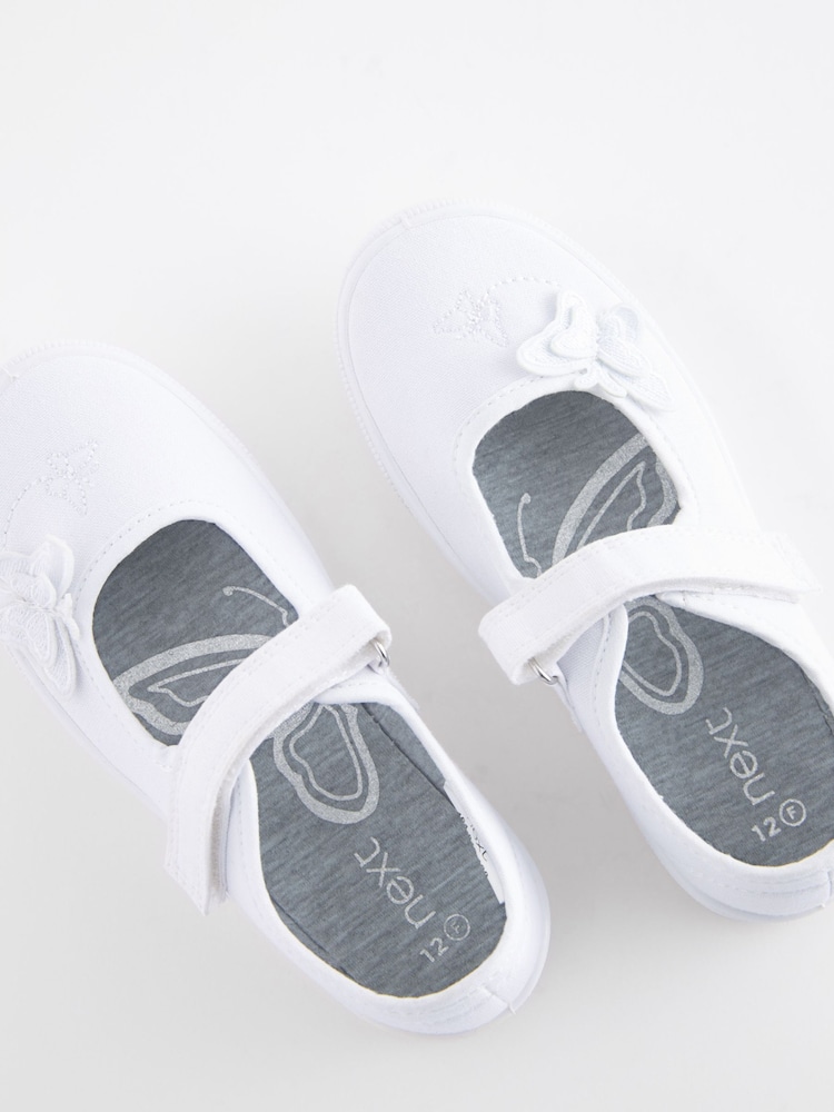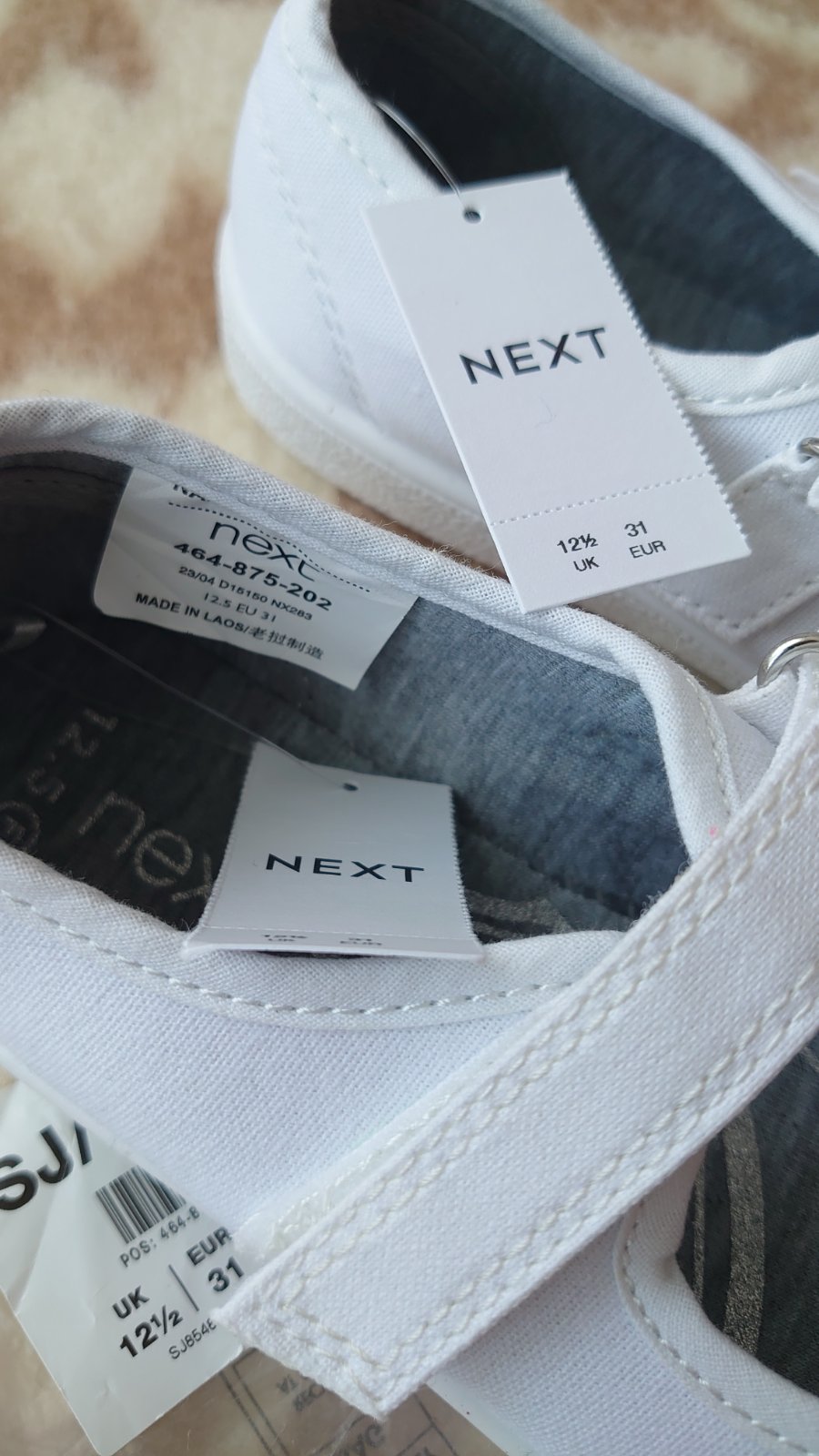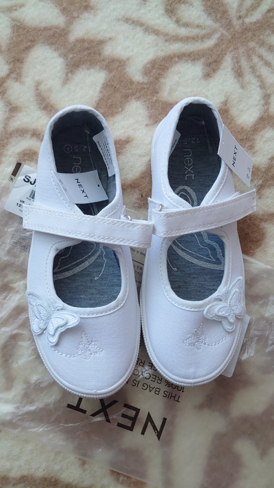 Na predaj nové s visačkou školské tenisky s vyšívanými motýľmi. Značka Next. Na dĺžku chodidla 18,8 cm-max.19 cm. Vnútorná dĺžka tenisiek 20 cm. Veľkosť 31, UK 12,5. Na suchý zips, možno prať v práčke, s protišmykovou podrážkou, vložky s pamäťovou penou. Štandardný strih. 12€
