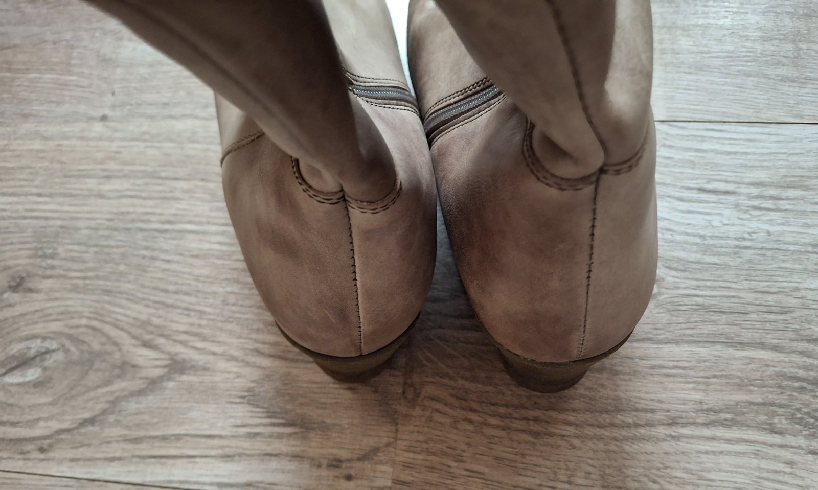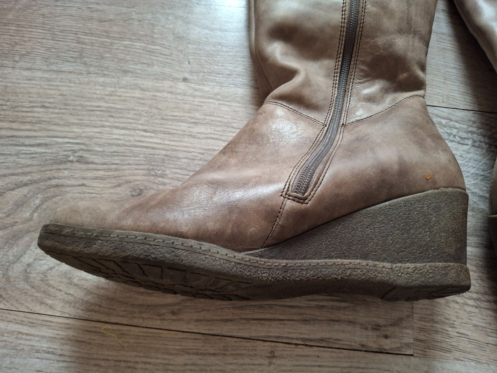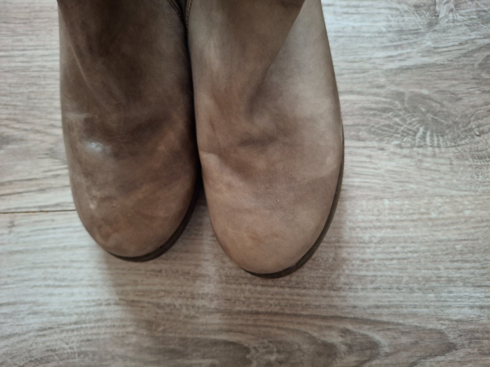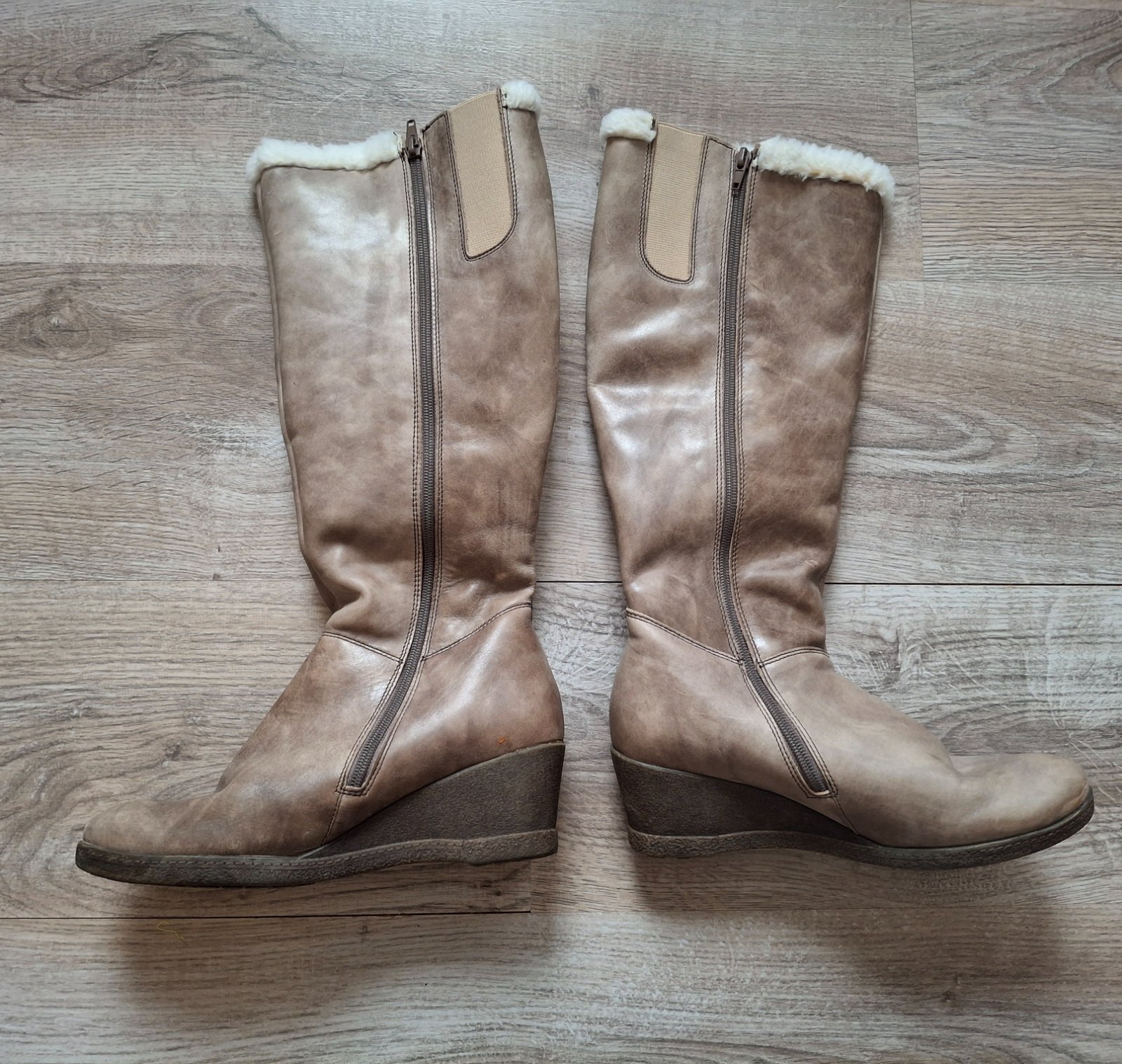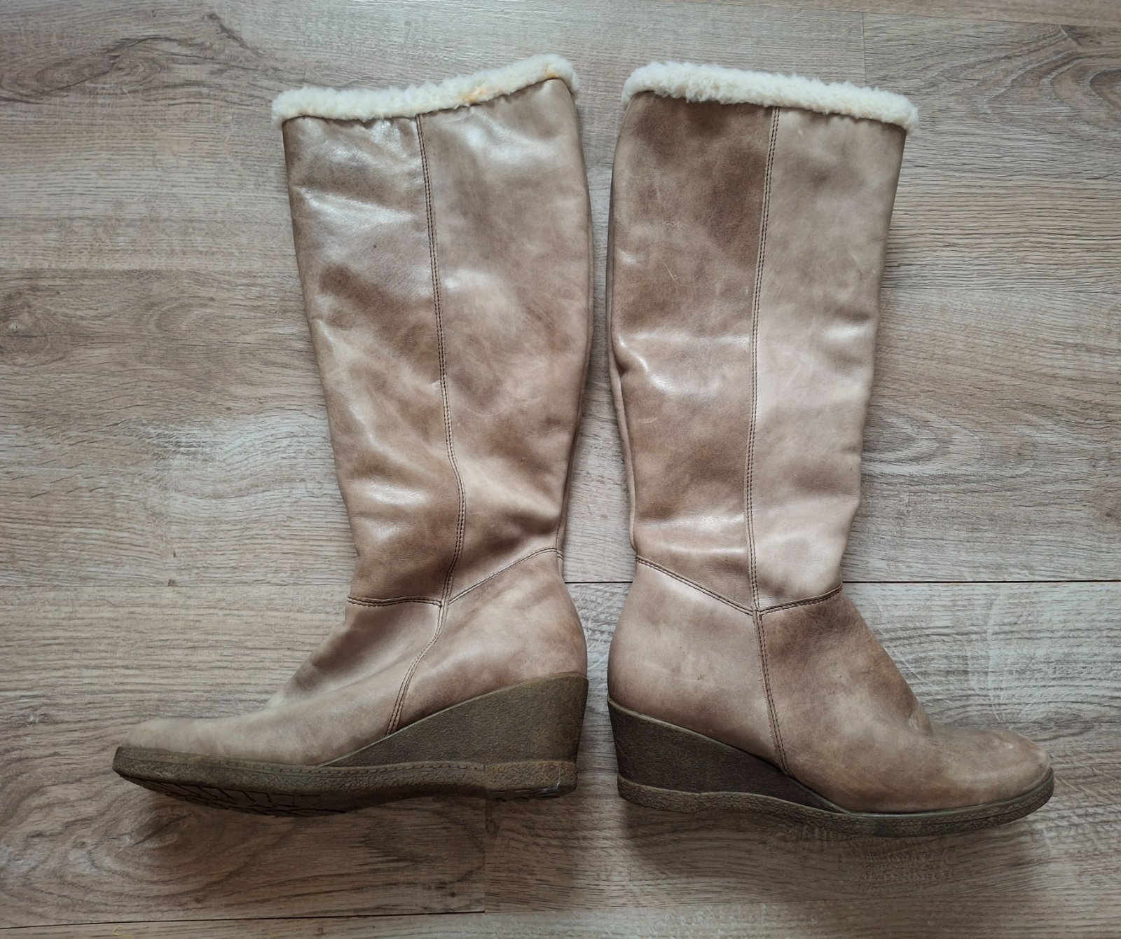 Nosené málo, bez väčších poškodení, iba pár miniškrabancov a trochu oškretá kožušinka navrchu, stav detailne nafotený. Veľkosť 40, výška 44cm. Vnútri zateplené kožušinkou.