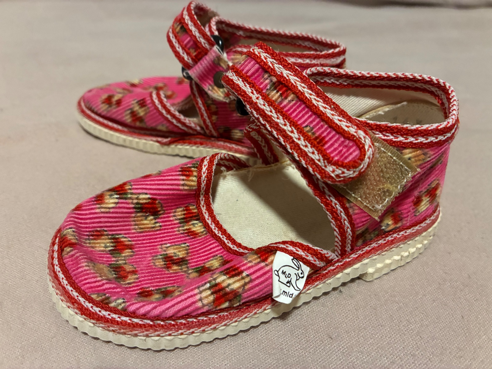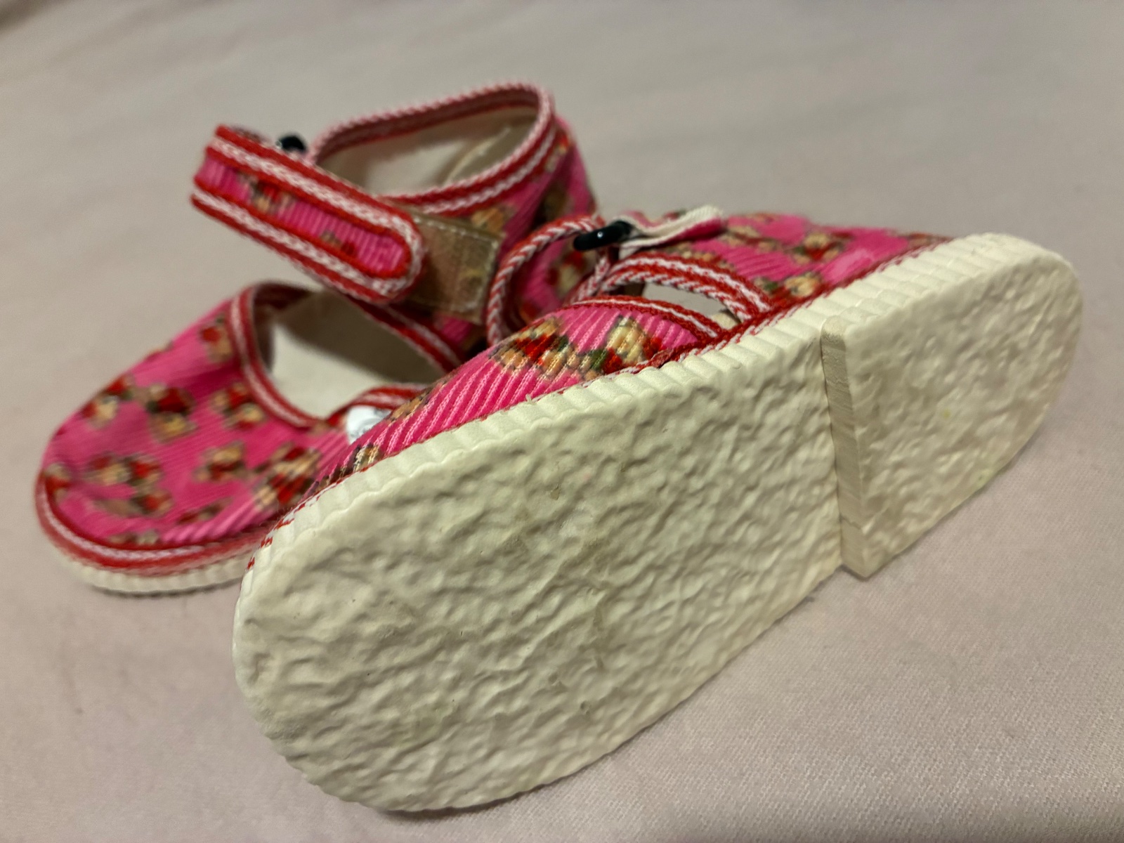 Nosené krátko. Veľmi pekný stav. Podrážka výborný stav. Zapínanie na suchý zips. Špička celá zatvorená. Vnútorná dĺžka 13,5 cm.