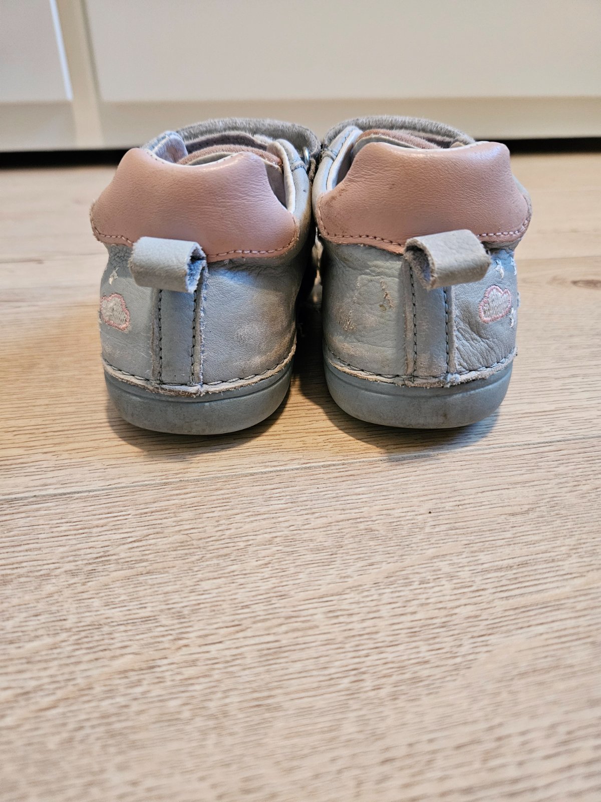 Topánočky nosené jednu jar. Na ľavej topánke ošuchnutá špica.