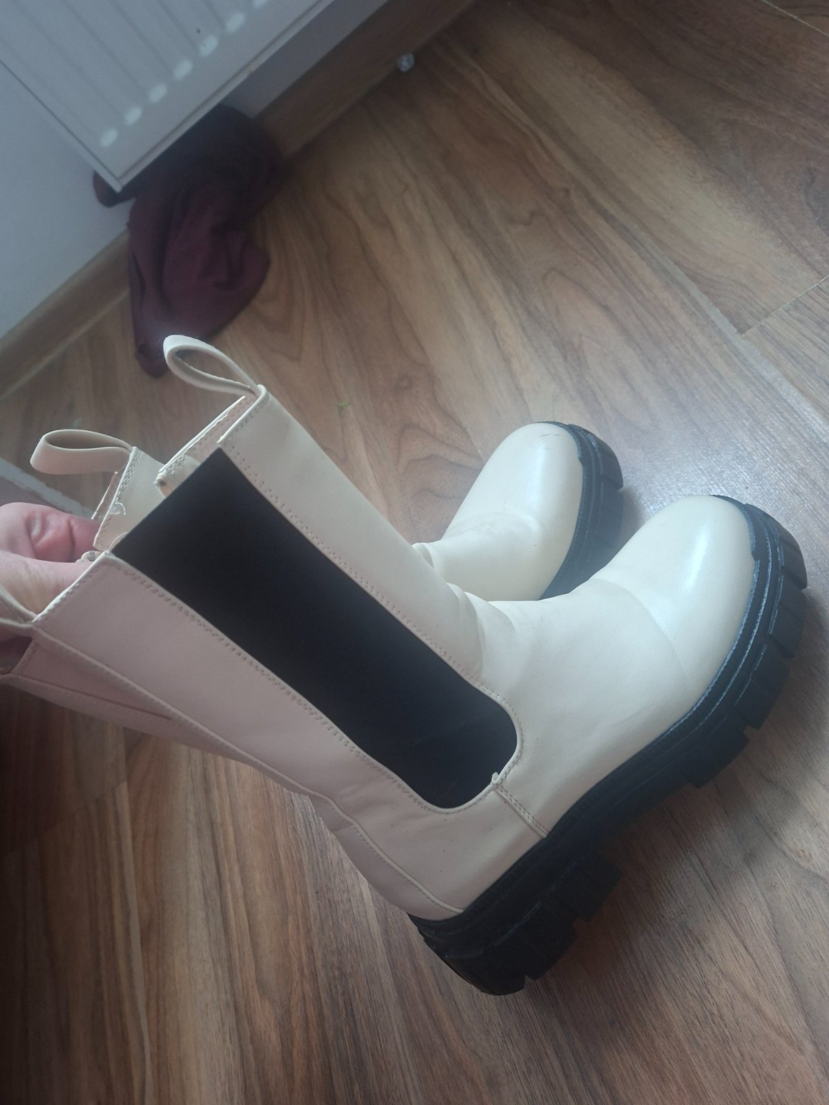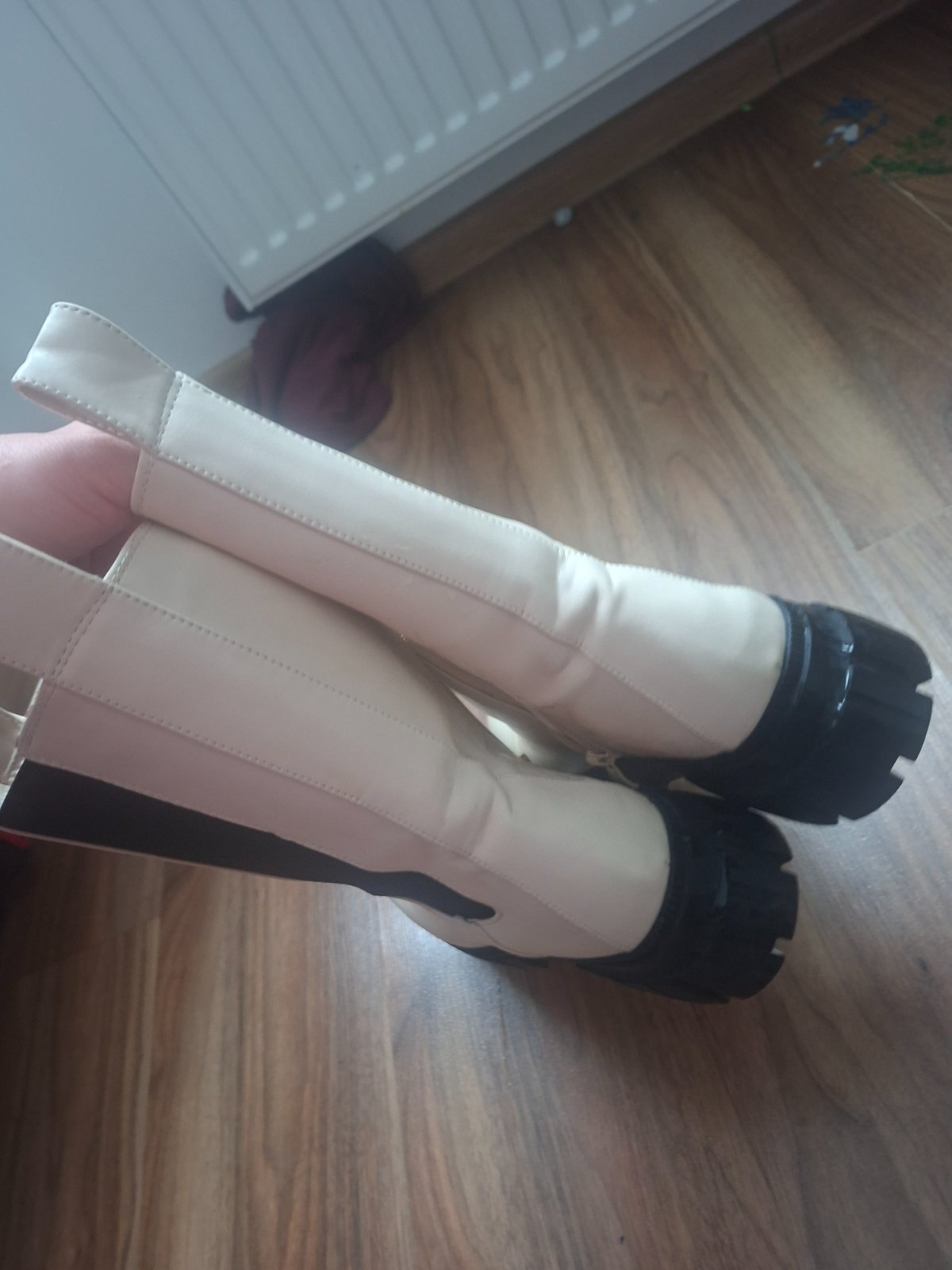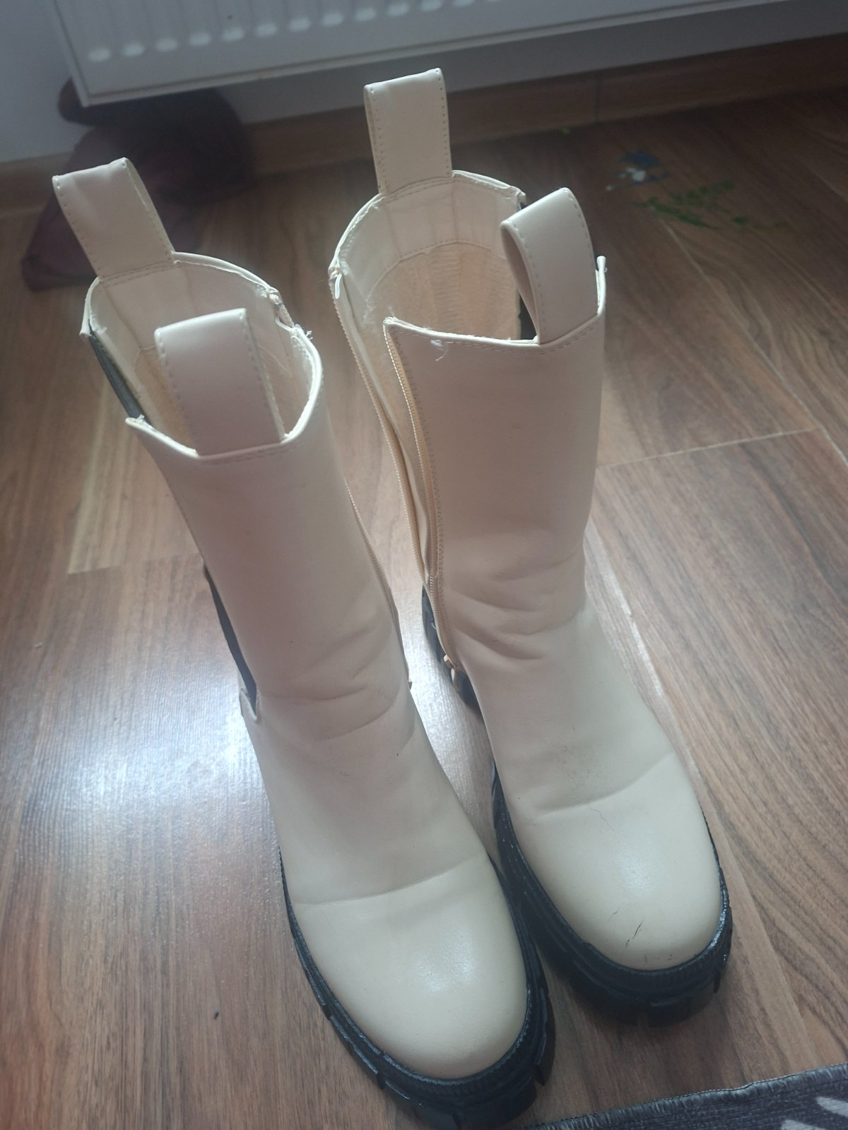 Velkost 41. Kremove. Velkost sedi, ale skôr pre užšie lýtka.