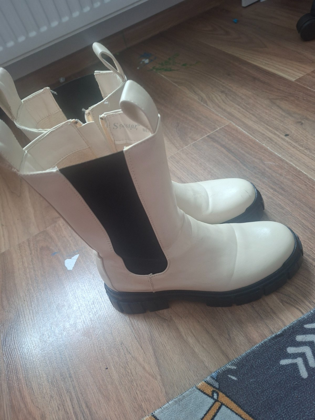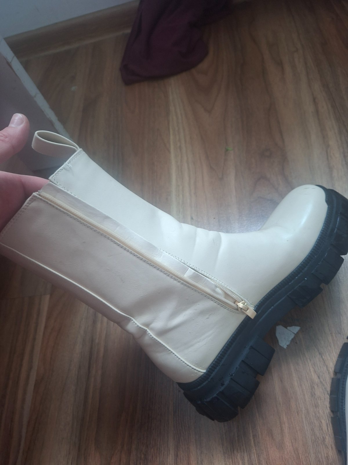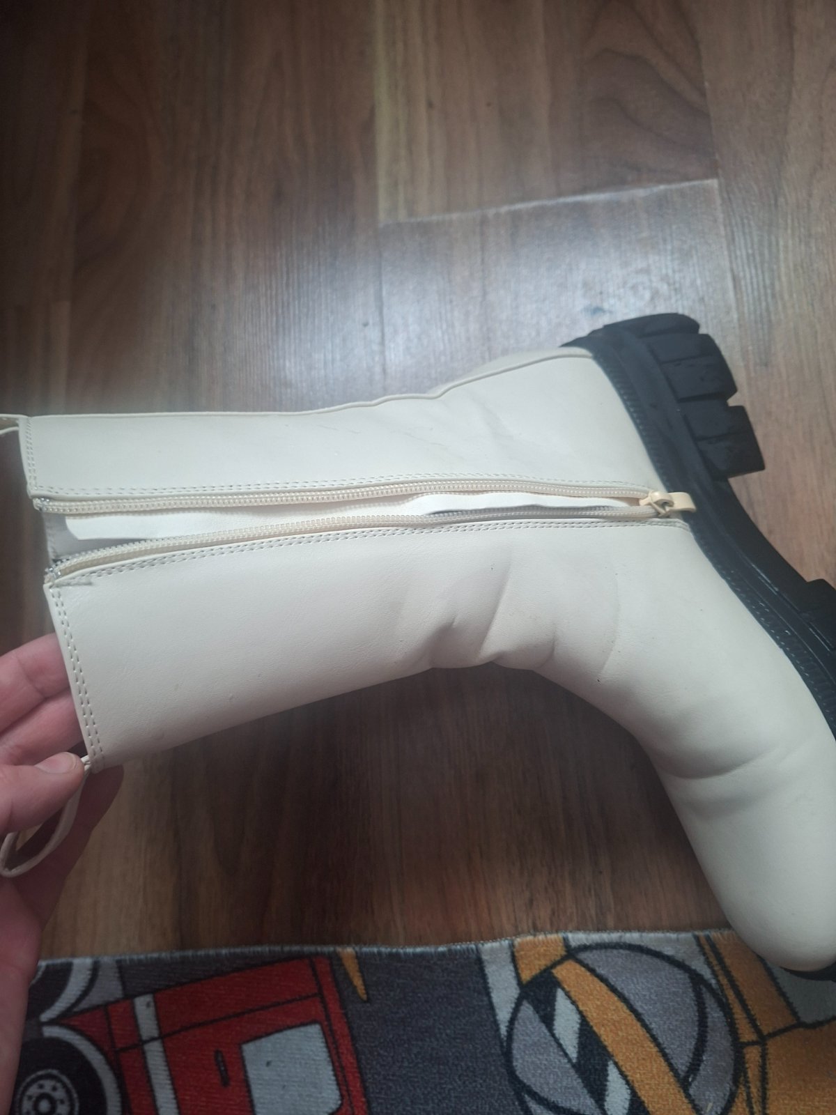 Velkost 41. Kremove. Velkost sedi, ale skôr pre užšie lýtka.