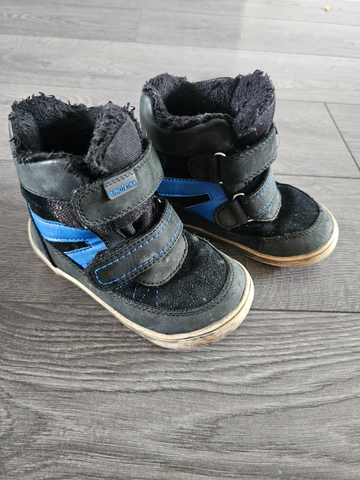 Chlapčenské vychádzkové zimné topánky v čiernej farbe. Sú vyrobené z hladkej a brúsenej kože v kombinácii s textilom. Topánky sú vyššieho strihu.Membrána PROTEX účinne chráni nohy pred dažďom a vlh...