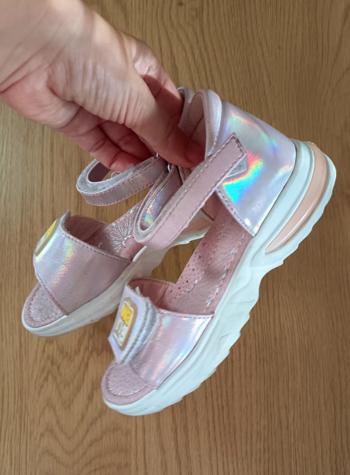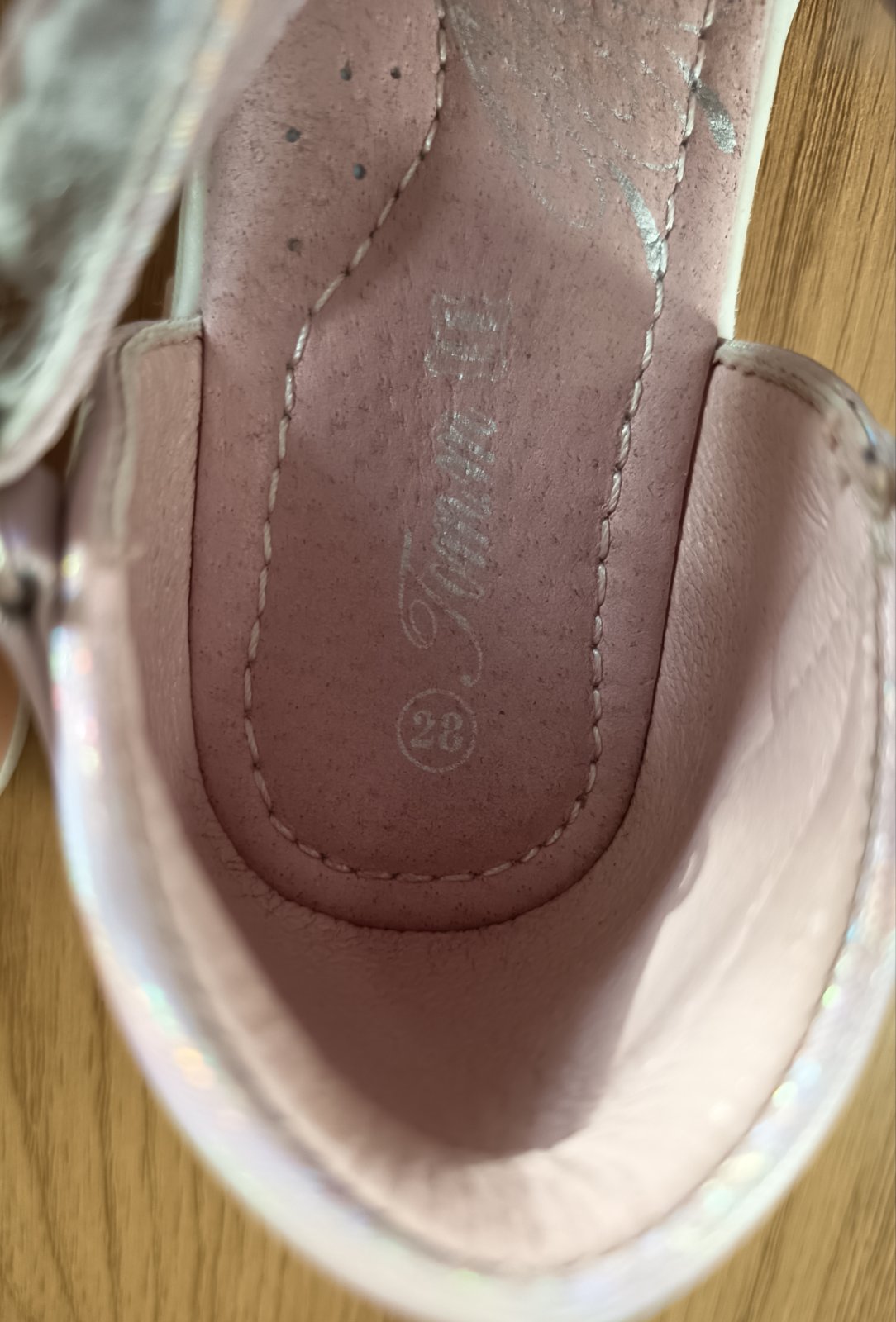 Sandalky na donosenie. Maju osuchanu spicku (vid. foto) , ale pri noseni to nevidiet a vzadu trosicku farbu. Vnutorna dlzka je 18 cm.