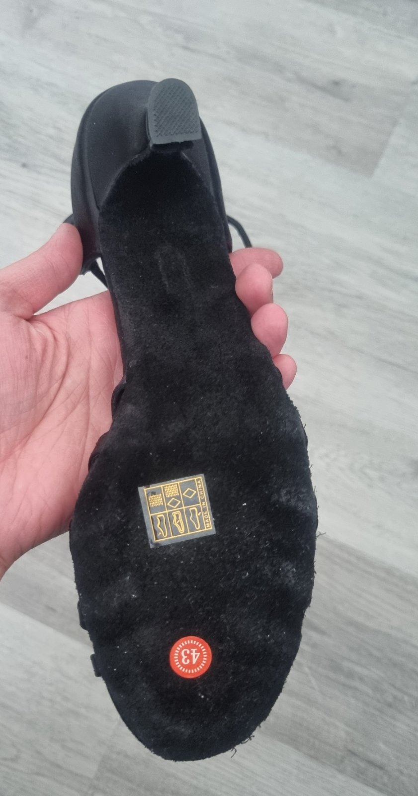 Nové, iba vyskúšané. Je na nich veľkosť 43, ale sedia na 42. Na užšiu nohu :) podpätok má 7 cm