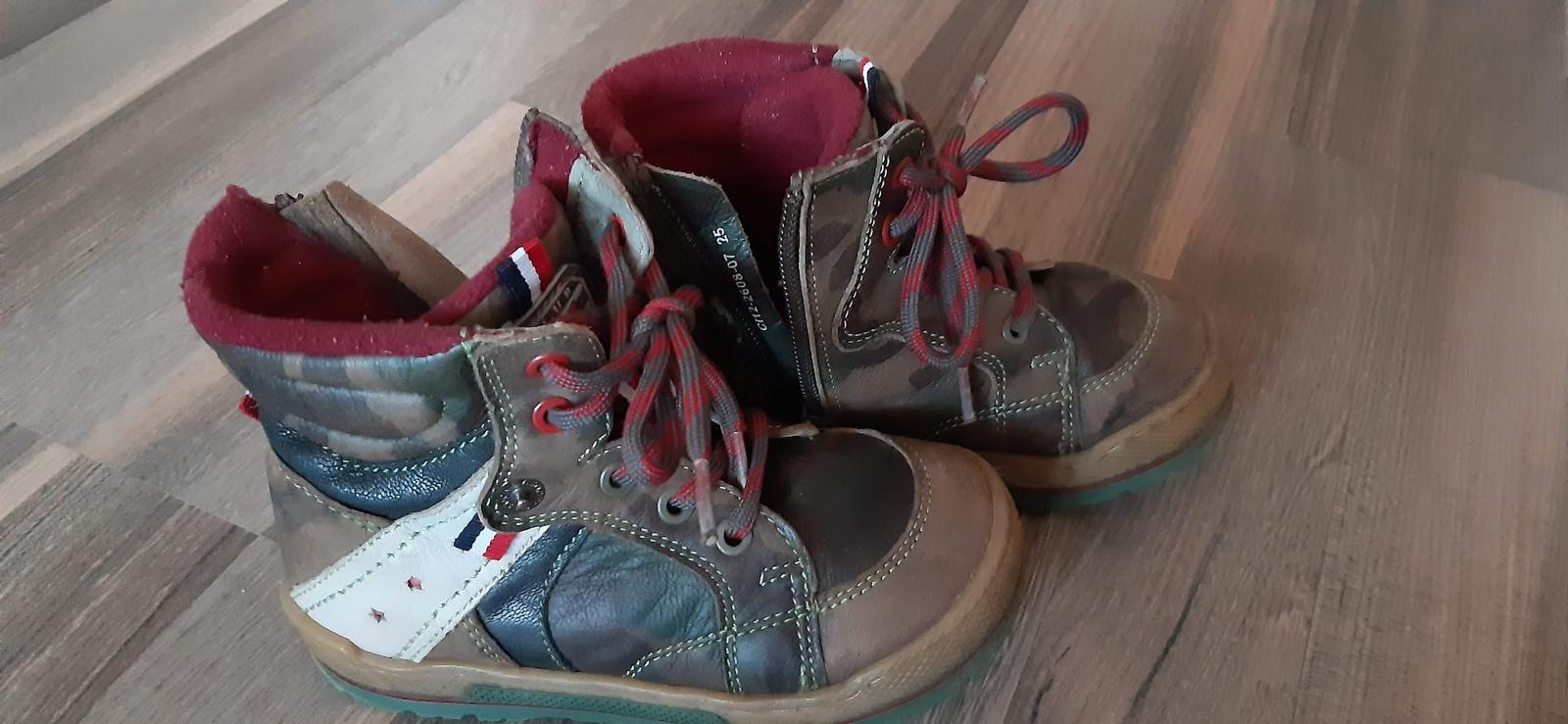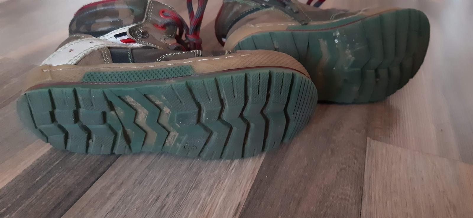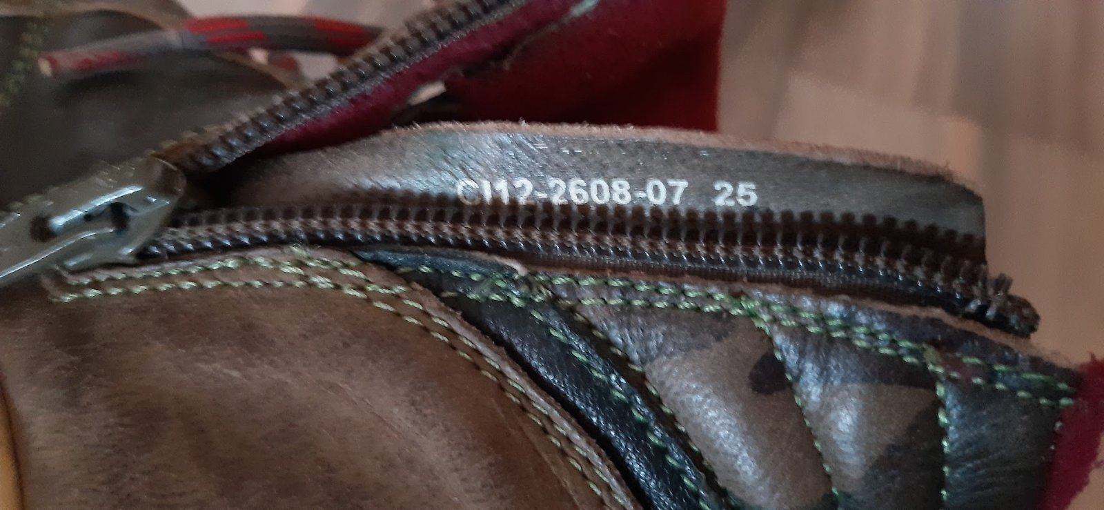 Ponúkam na predaj členkové/vysoké topánky pre chlapcov na jar alebo jeseň značka LASOCKI. Hnedej farby s vojenským motívom („army“) (zelená/khaki/olivová). Veľkosť 25 (mnou nameraná dĺžka 16,5 cm na doraz). Vo veľmi dobrom stave. Cena 4€.