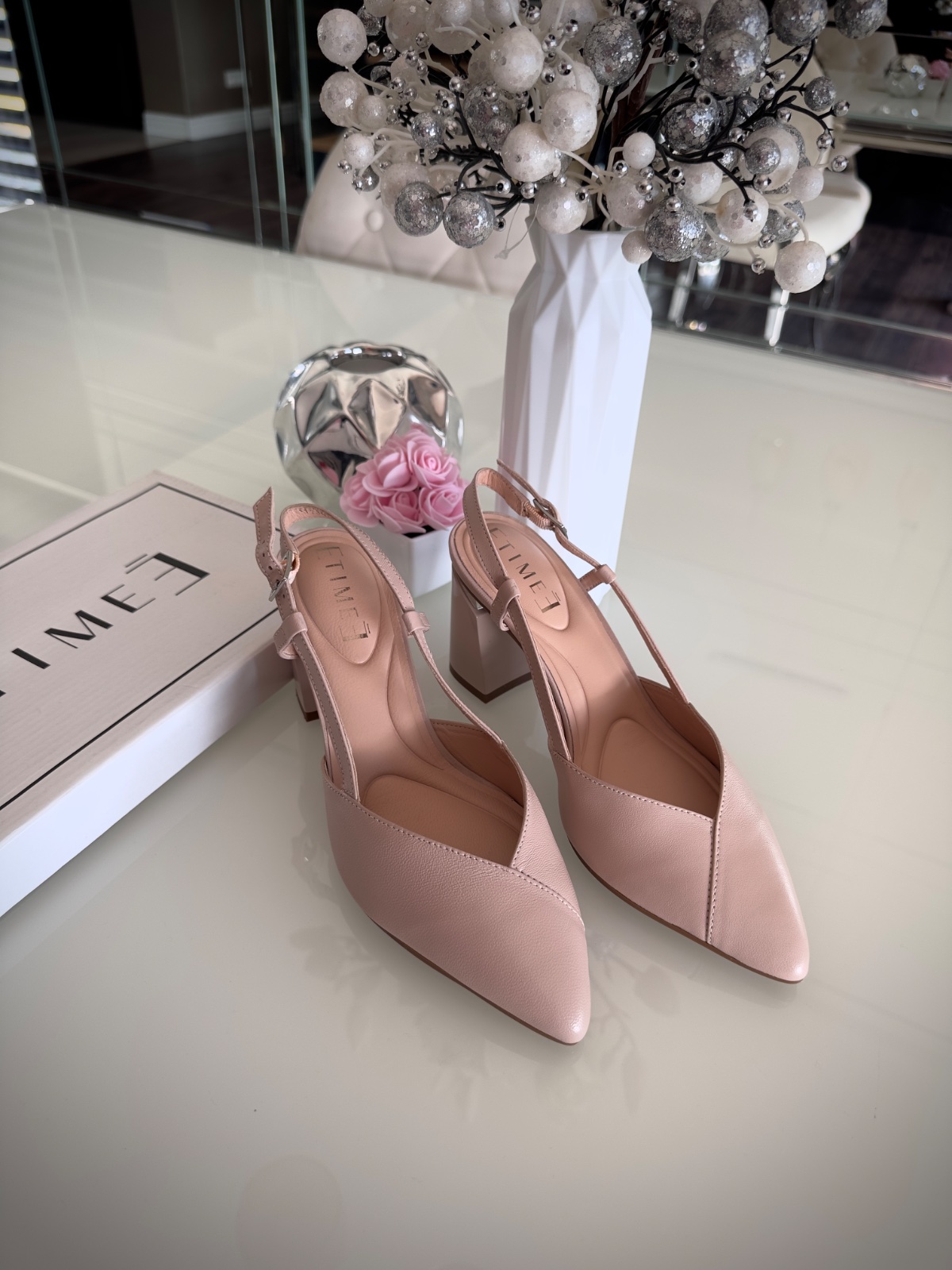 Posuniem kvalitné kožené lodičky s remienkom a otvorenou pätou. Raz použité v interiéri. Top stav, bez chybičky, viď foto. Krásna púdrová farba, telová s nádychom bledurožovej, elegantné k šatám, na svadbu, krstiny, príležitosti. Strieborný detail na opätku. Velmi pohodlné vďaka makkej stielke. Pravá koža. Komplet s krabicou, bločkom a dustbagom.