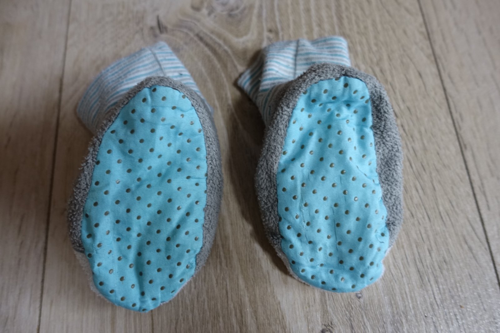 Predám krásne velúrové dvojvrstvové capačky. Capačky sú mäkučké a príjemné na nosenie. Hore majú gumičku (žiaľ už je na nej nosením chĺpoček z prania, vidno ho len pri naklonení, ešte nie je gumička extra žmolkavá), dieťatko si ich neskopne z nožičky dole. Pekne sa obujú na ponožky, či do autosedačky, či do kočíka, alebo aj v byte, keď sa ochladí a dieťatko má nožičky pekne v teplúčku. Boli nosené, ale ešte určite poslúžia. Spodky capačiek sú pogumované drobnými guličkami, žiaľ na capačkách úplne na spodku je sem tam drobné zatiahnutie na látke medzi pogumovanými guličkami. Vypadá to ako rýchlik, ale nie je to predraté, Iba v látke sú čiaročky. Sem tam. Viď foto. Ale sú krásne, určite sa dajú ešte donosiť. Vonkajšia dĺžka 11,5 cm. (B)