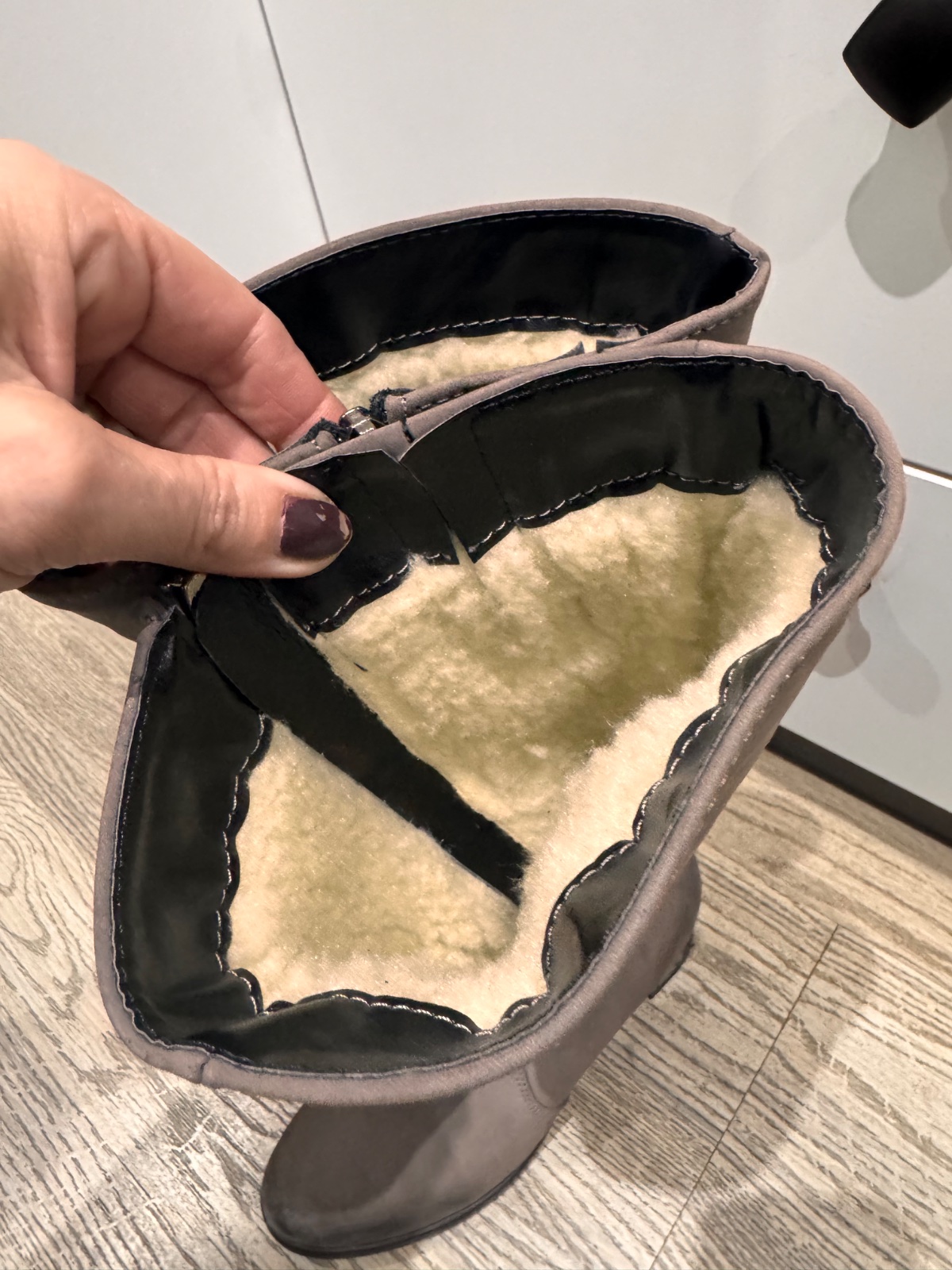 Zimné krasne topánky, brusena šedá koža, s pravou kožušinou, stav velmi dobry, nosene pár krát. Vo vnútri skrytá zvysena päta. veľkosť 38, pôvodná cena 99€, teraz cena 60€.